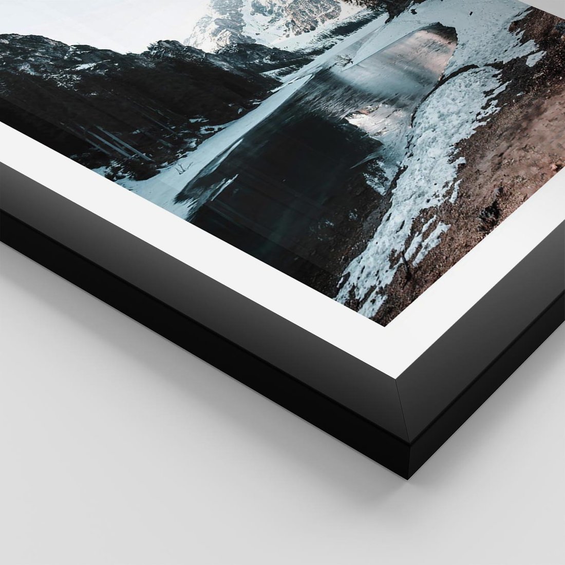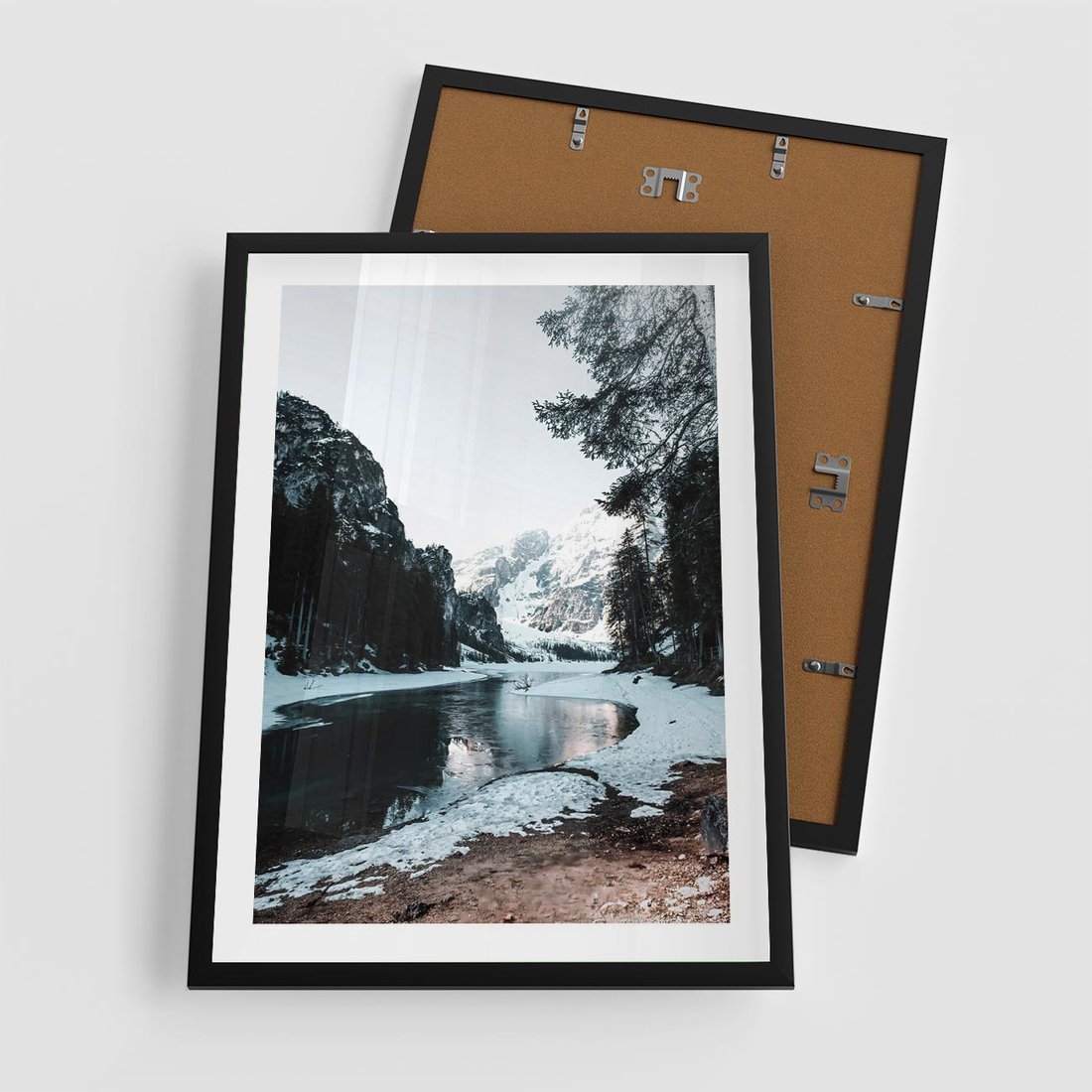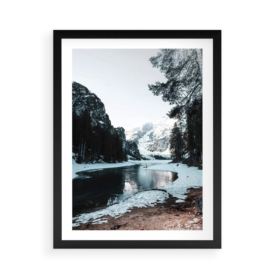 Plakat w ramie 50x70 - Zamarznięta Rzeka - zima w górach, zamarznięta rzeka - rama czarna