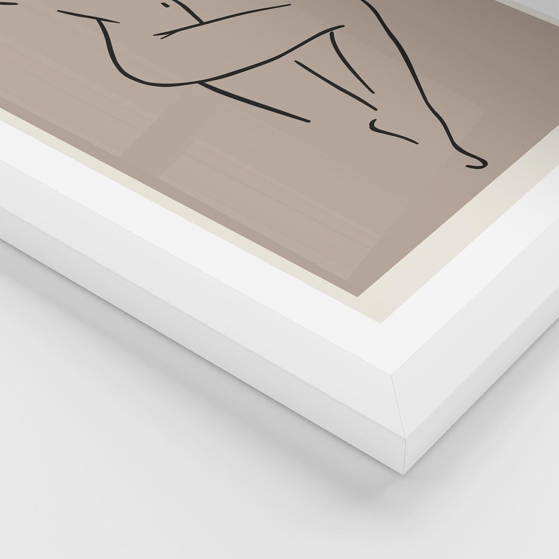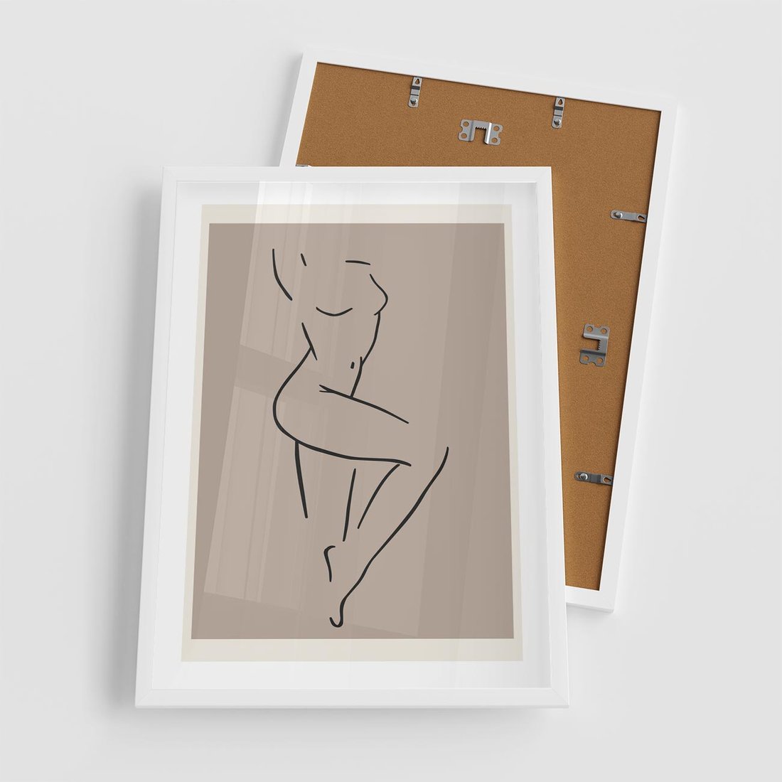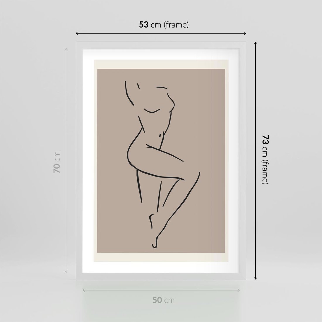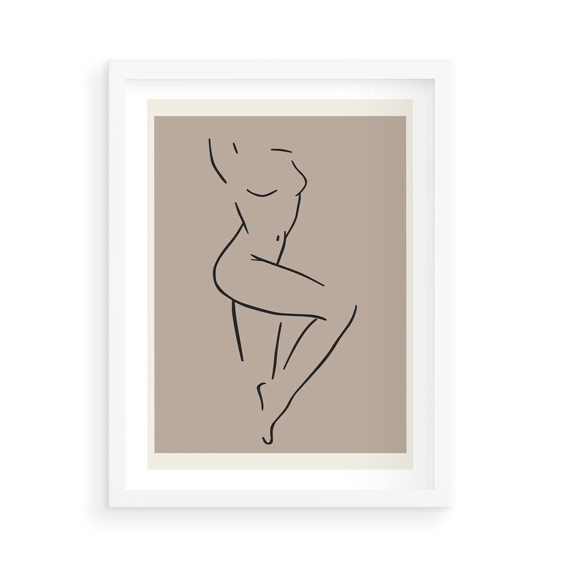 Plakat w ramie 50x70 - Zanikająca Wyobraźnia - mnimalistyczny akt, beżowa tonacja - rama biała