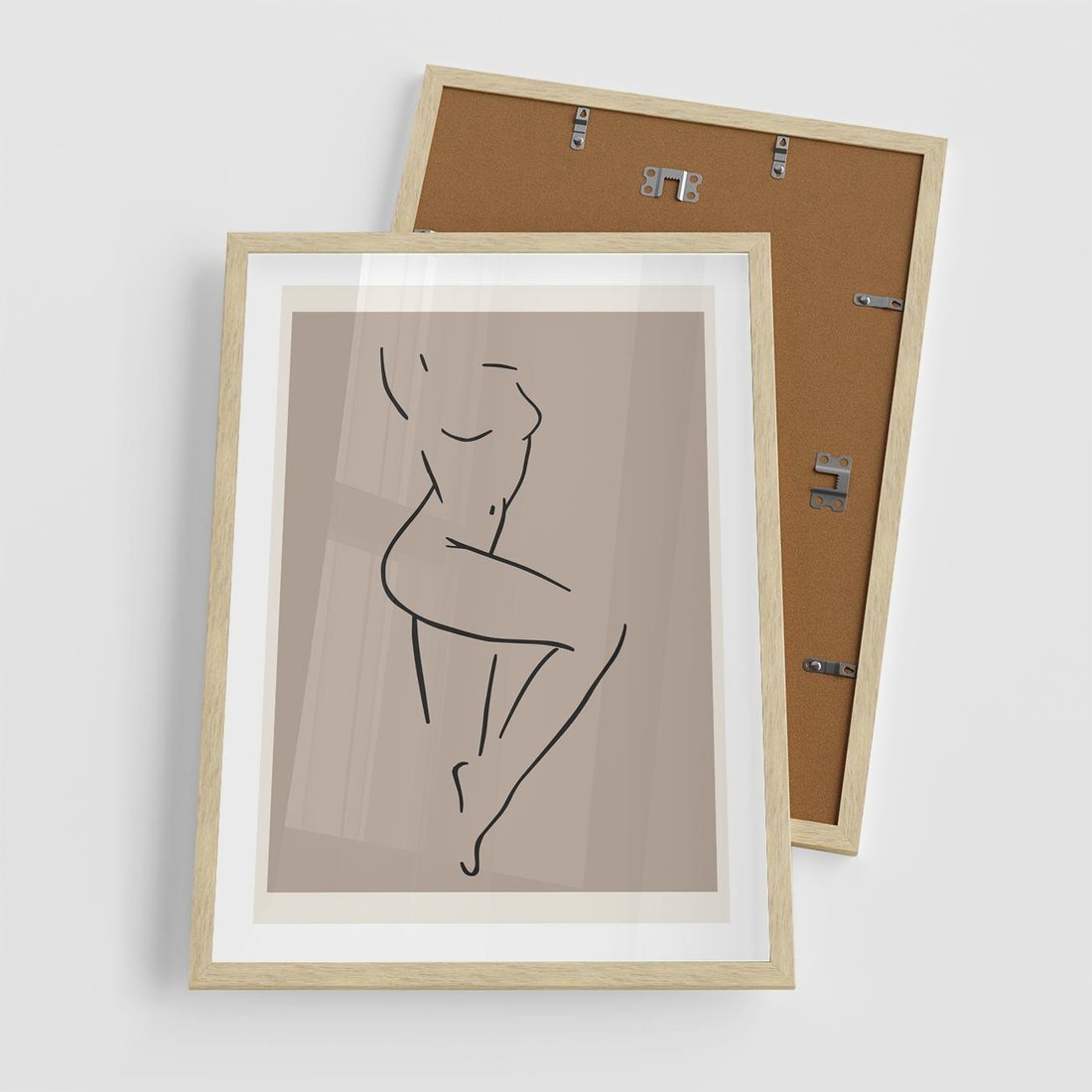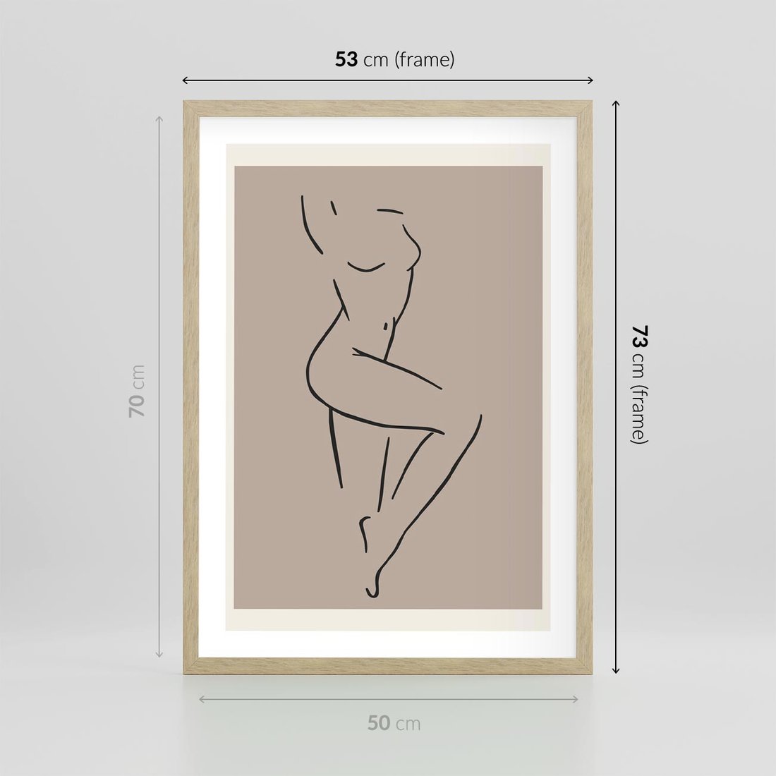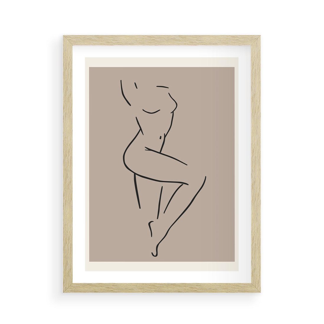 Plakat w ramie 50x70 - Zanikająca Wyobraźnia - mnimalistyczny akt, beżowa tonacja - rama drewno