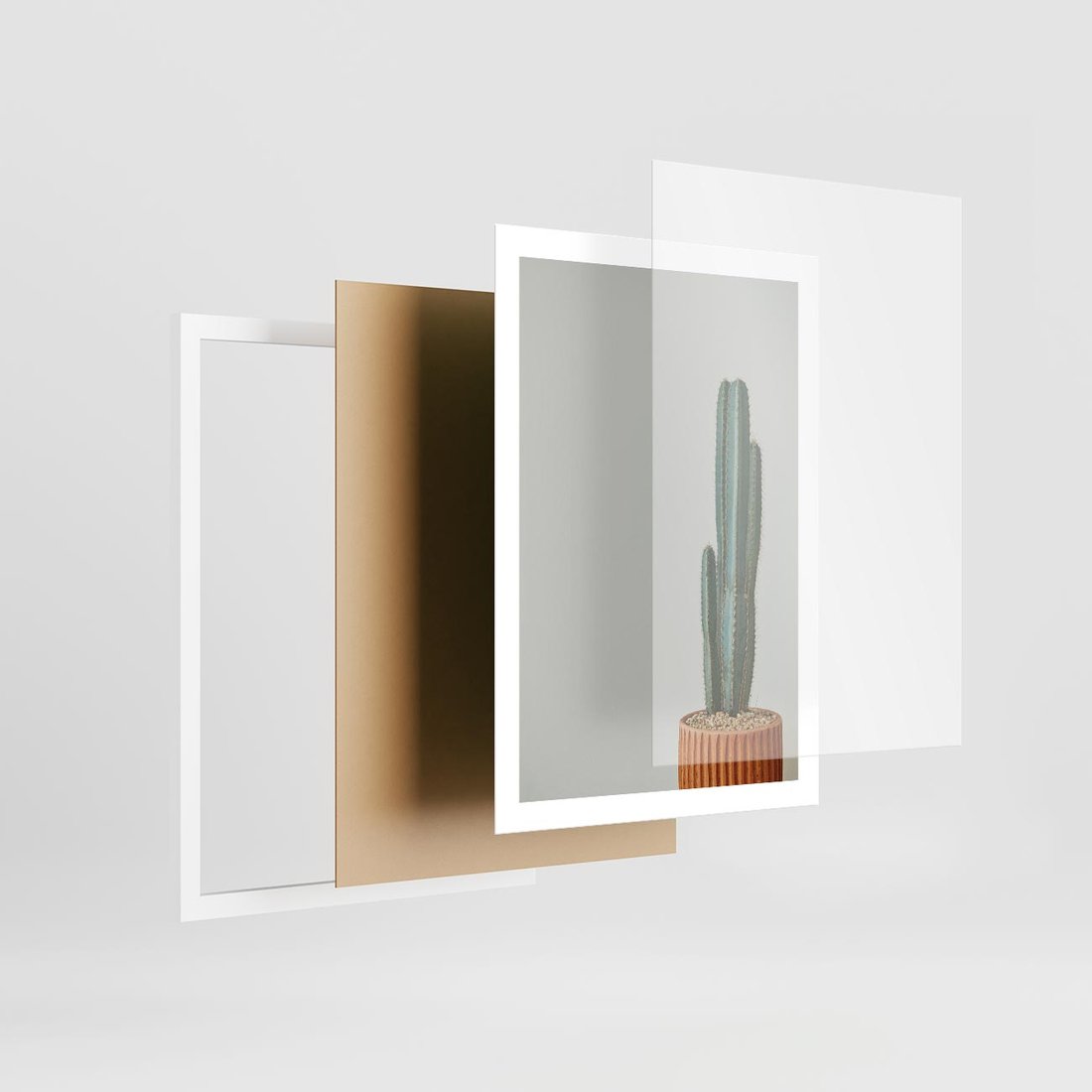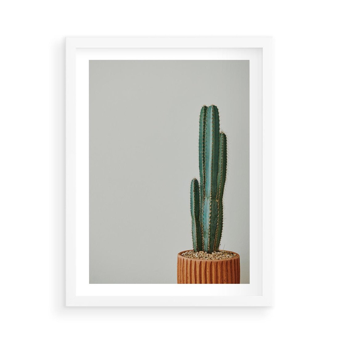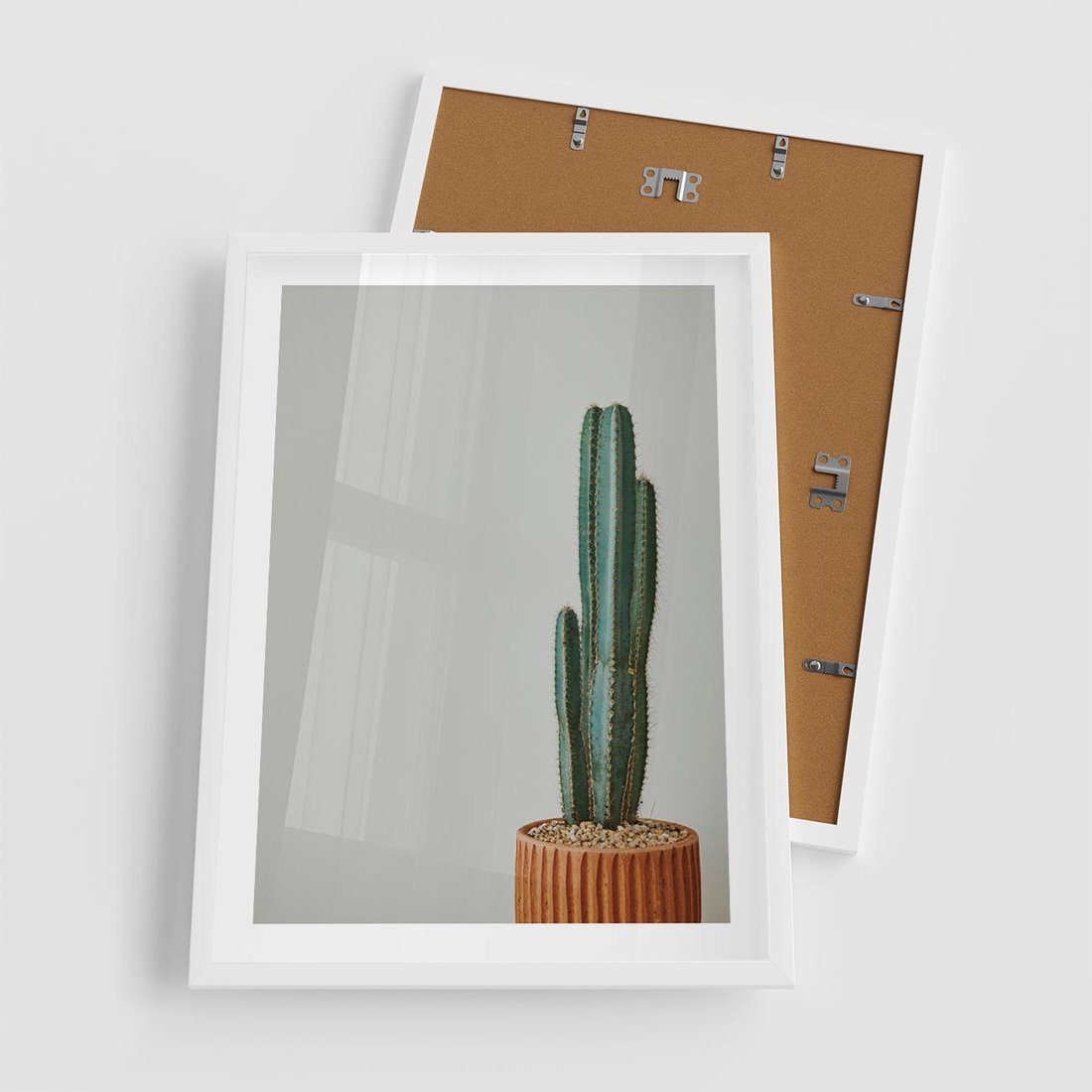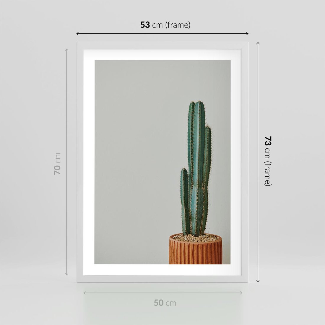 Plakat w ramie 50x70 - Zieleń i Subtelność - kaktusy, liście - rama biała