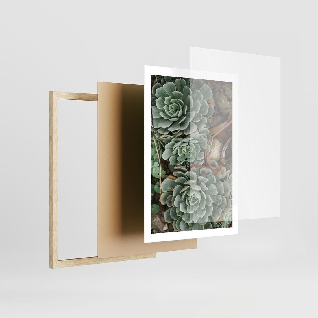 Plakat w ramie 50x70 - Zielona Uroda Sukulentów - sukulenty, zielone liście - rama drewno