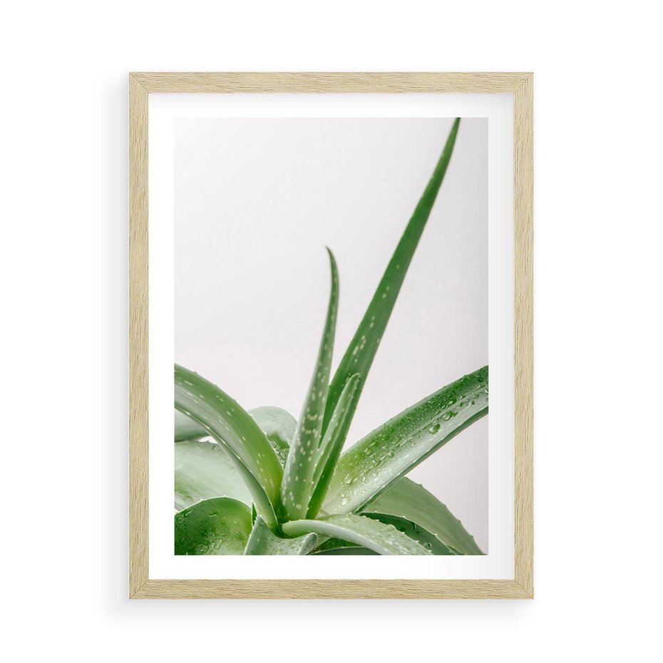 Plakat w ramie 50x70 - Zielone Piękno - aloes, liście - rama drewno