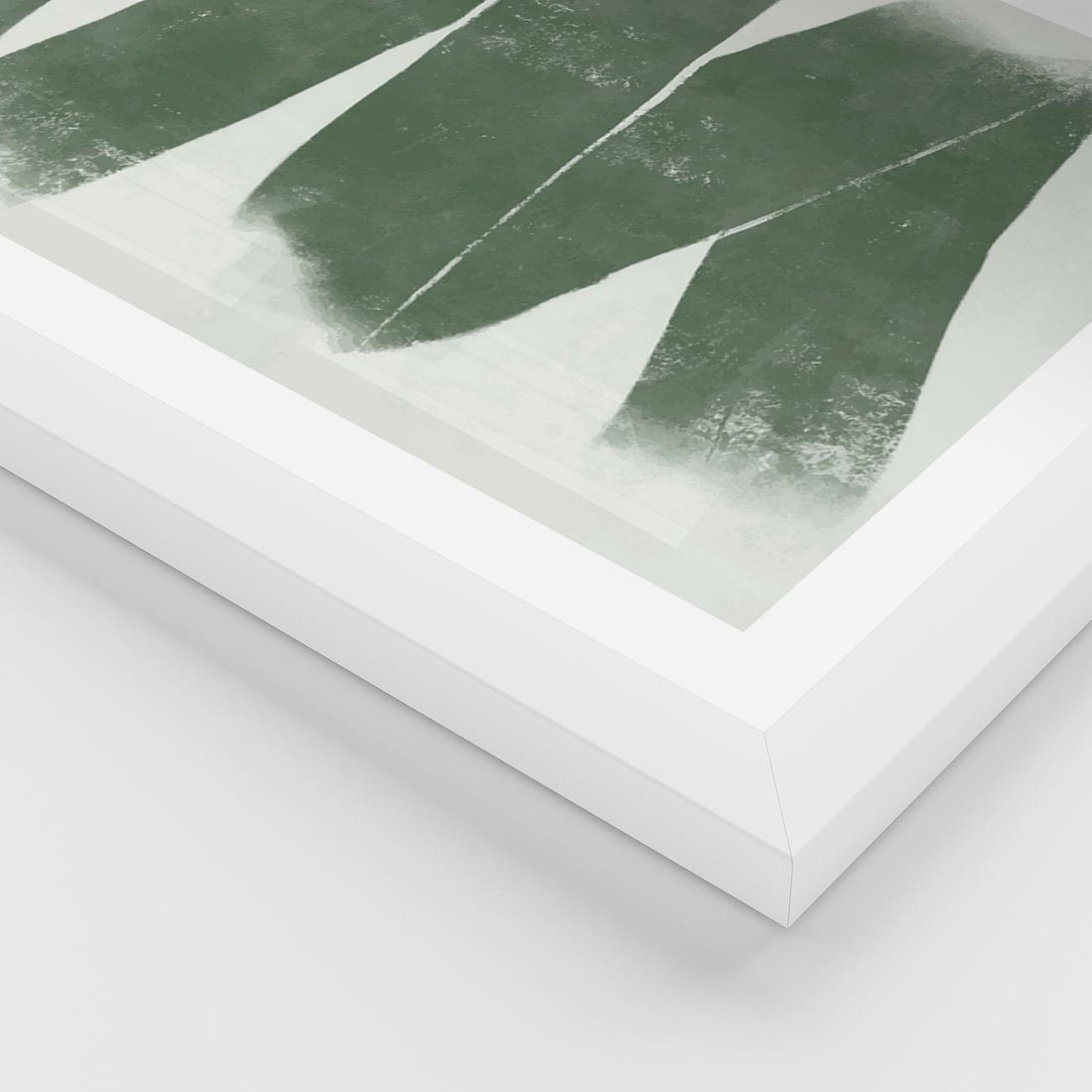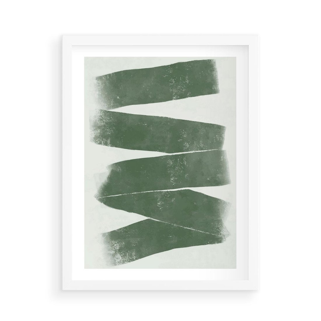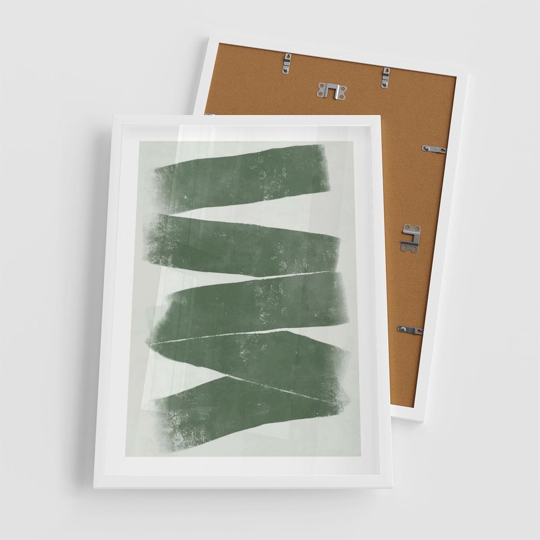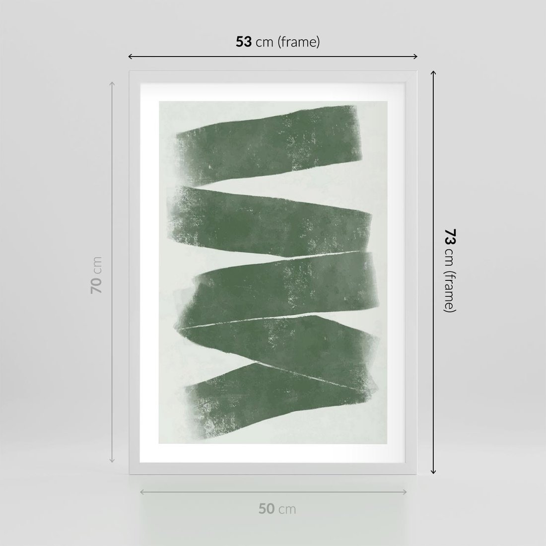 Plakat w ramie 50x70 - Zielone Refleksje - abstrakcja, zgaszony zielony kolor - rama biała