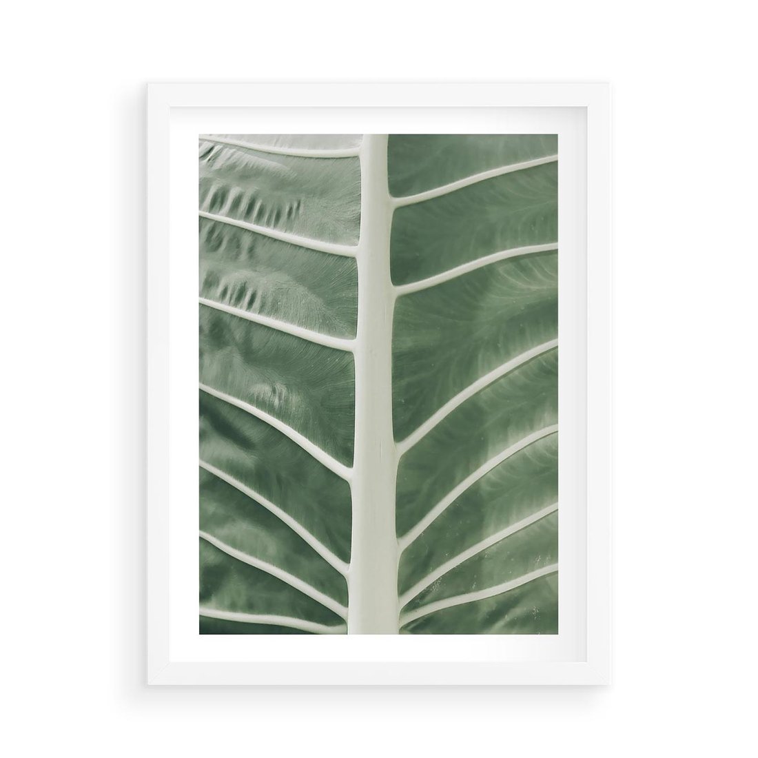 Plakat w ramie 50x70 - Zielone Wielkości: Zbliżenie Liścia - zbliżenie duz liść, jasna zieleń - rama biała