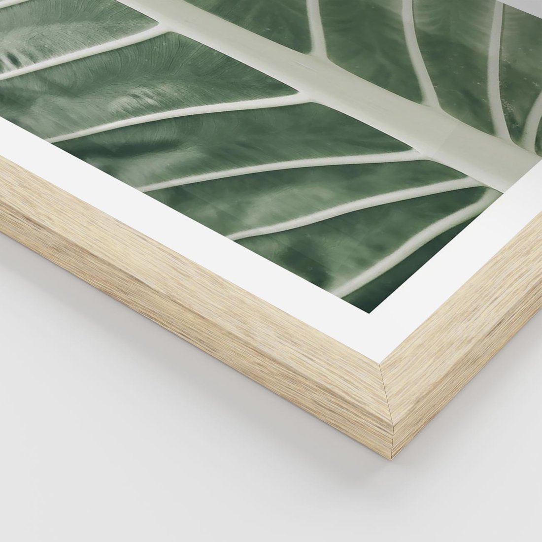 Plakat w ramie 50x70 - Zielone Wielkości: Zbliżenie Liścia - zbliżenie duz liść, jasna zieleń - rama drewno