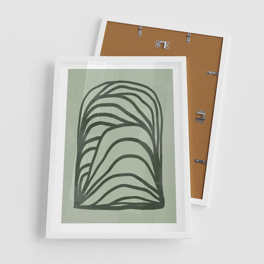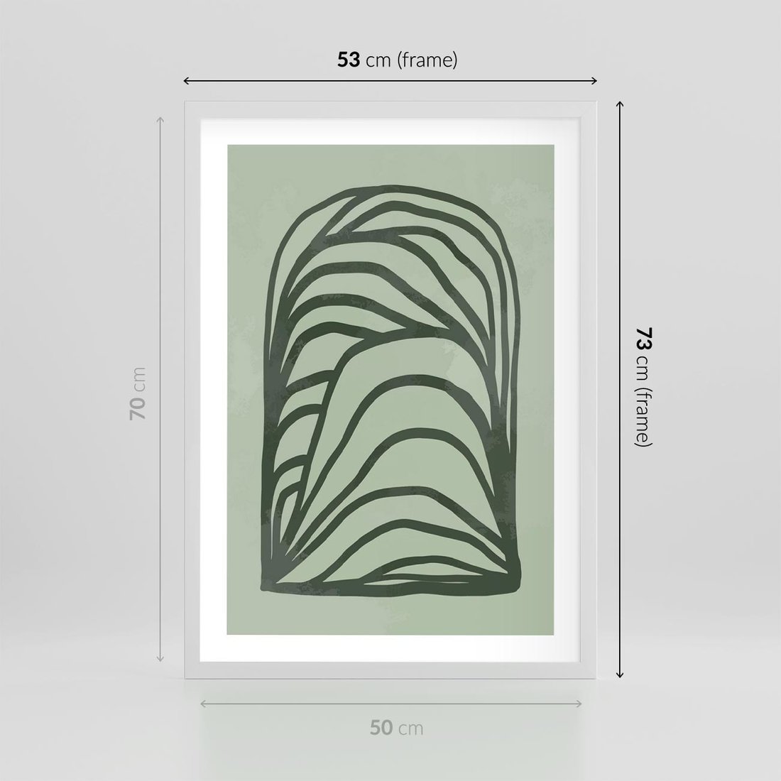 Plakat w ramie 50x70 - Zielonkawy Uścisk Natury - abstrakcyjny zielony motyw, skandynawski design - rama biała