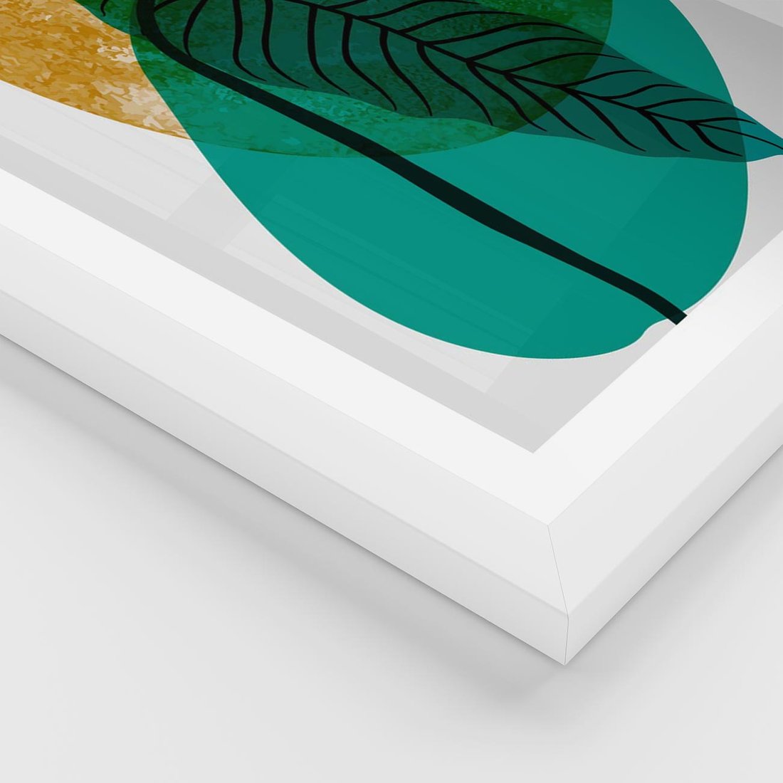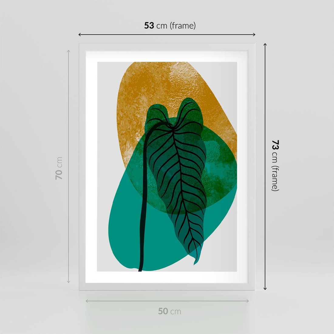 Plakat w ramie 50x70 - Zielony Liść ze Złotą Plamą - zielony liść, złota plama - rama biała