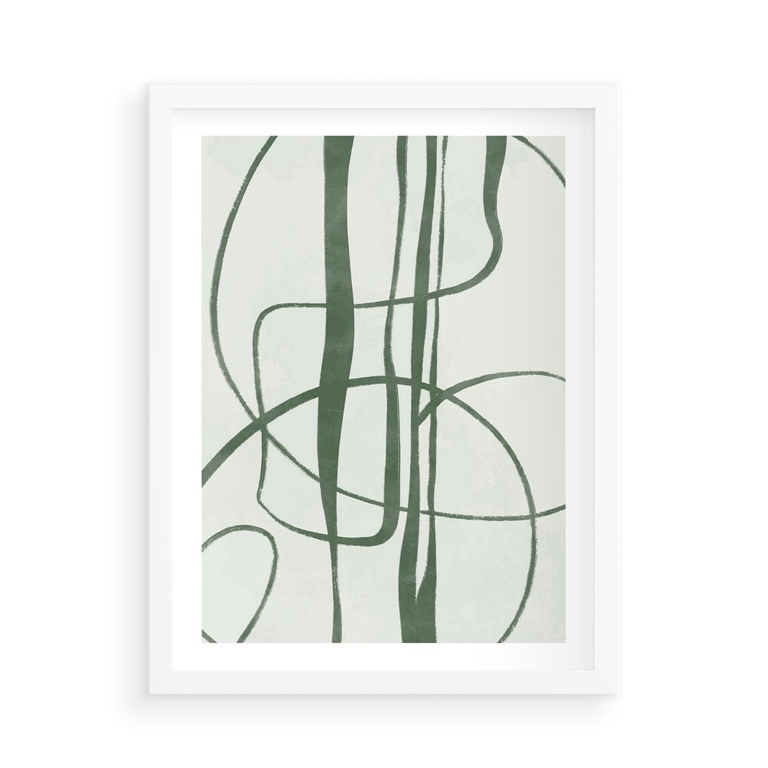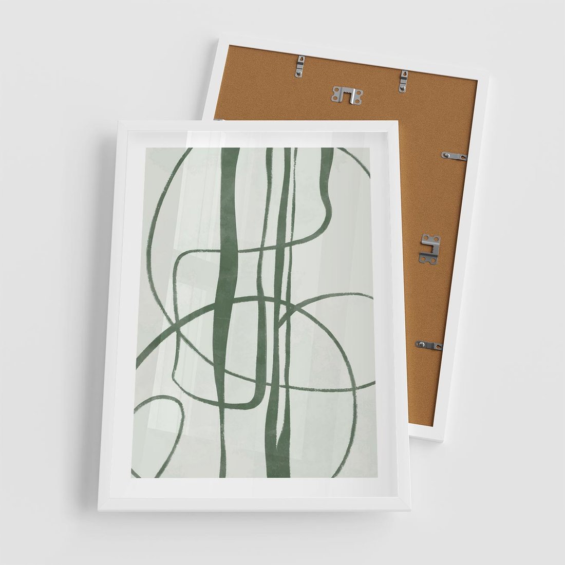 Plakat w ramie 50x70 - Zielony Spokój - zielona abstrakcja, spokojny plakat - rama biała
