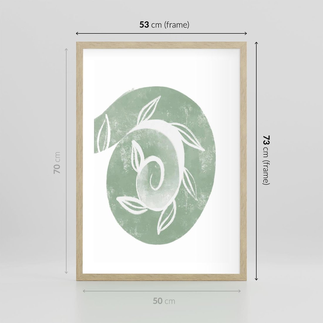 Plakat w ramie 50x70 - Zielony Świat Odpoczynku - abstrakcyjny zielony motyw, skandynawski design - rama drewno
