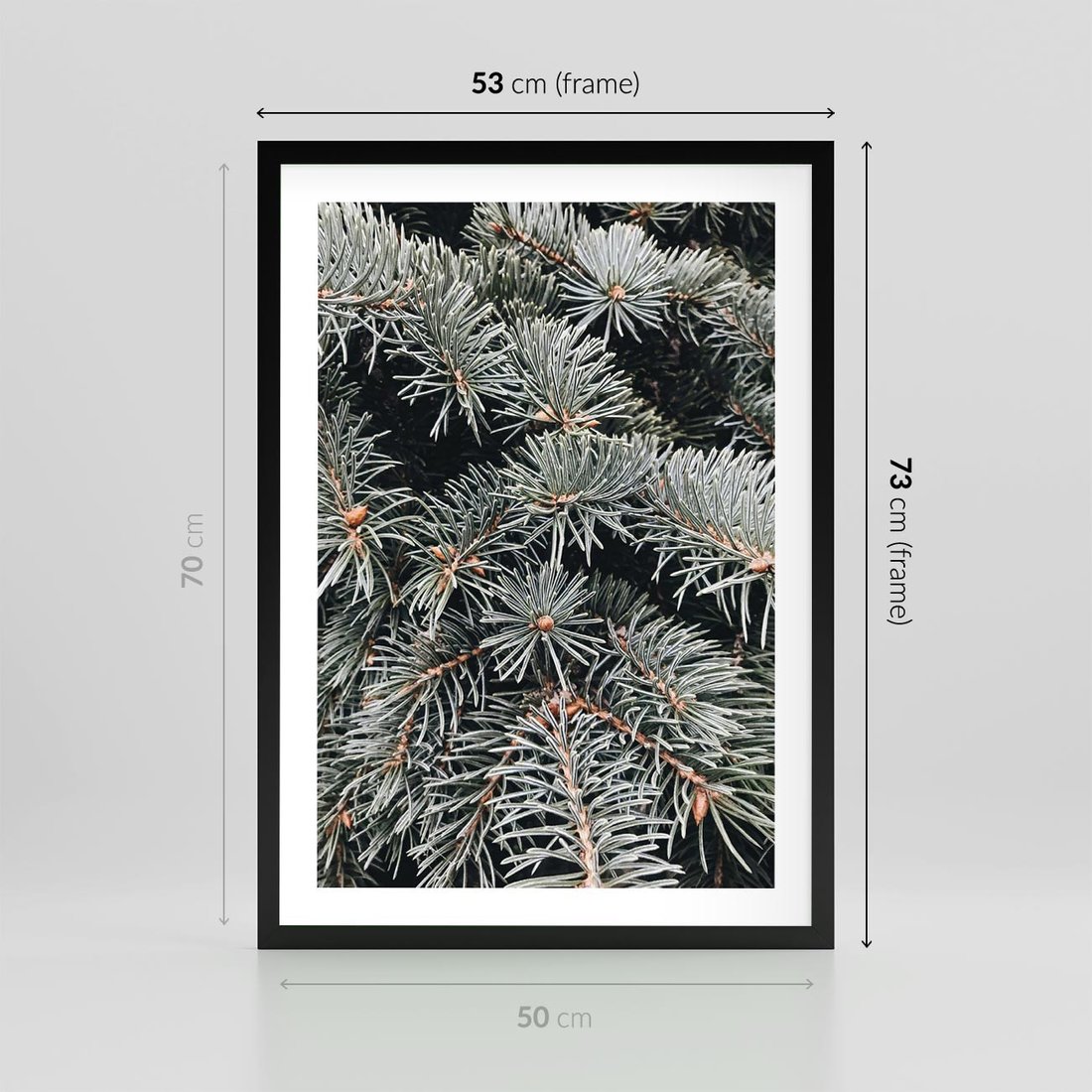 Plakat w ramie 50x70 - Zima na Gałęziach - sosnowe gałęzie, igły - rama czarna