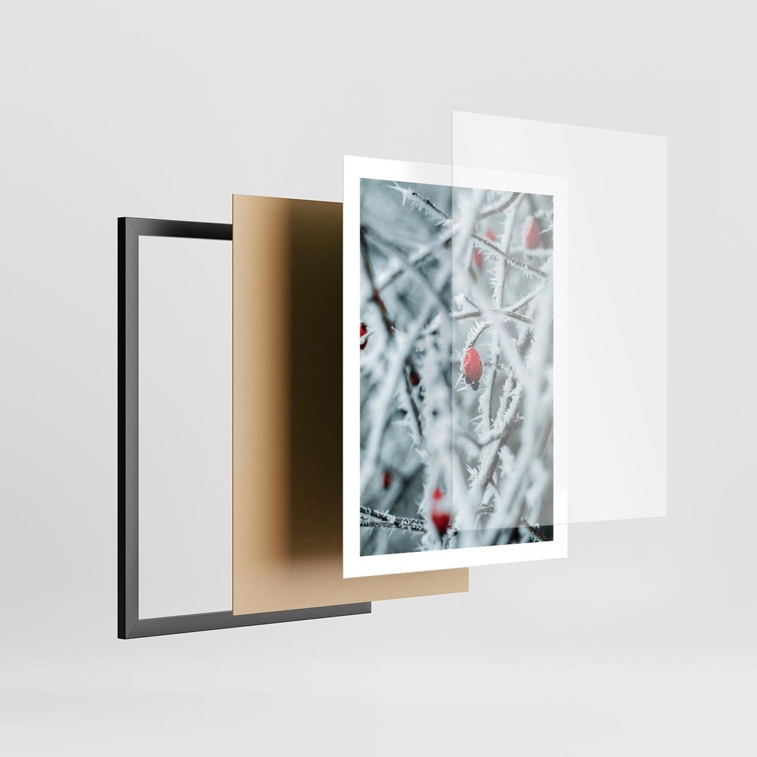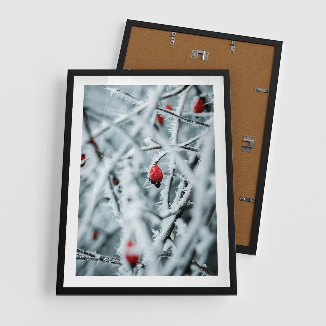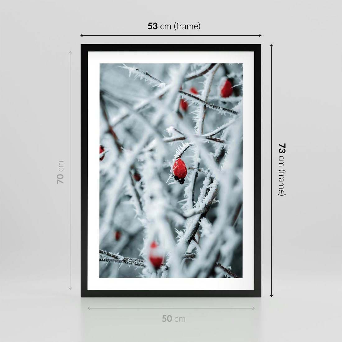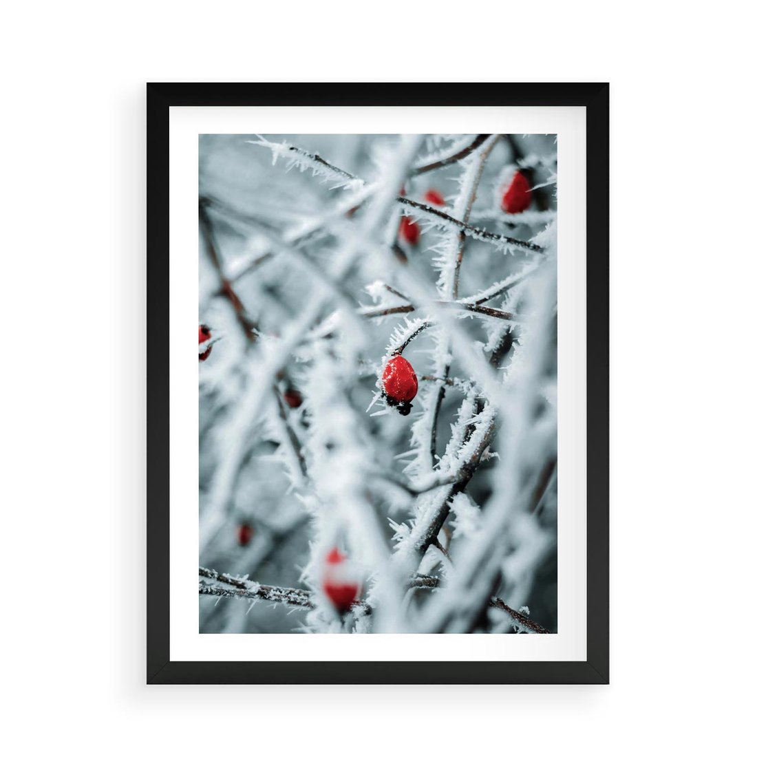Plakat w ramie 50x70 - Zima na Gałęziach - zima, oszronione gałęzie - rama czarna