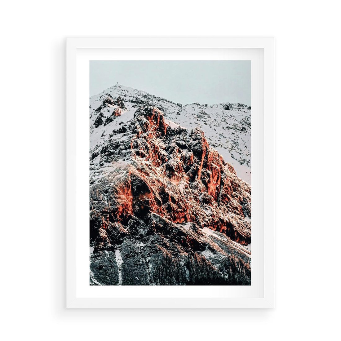 Plakat w ramie 50x70 - Zima na Szczycie - góry, zima - rama biała