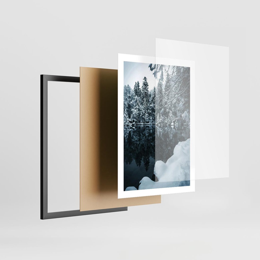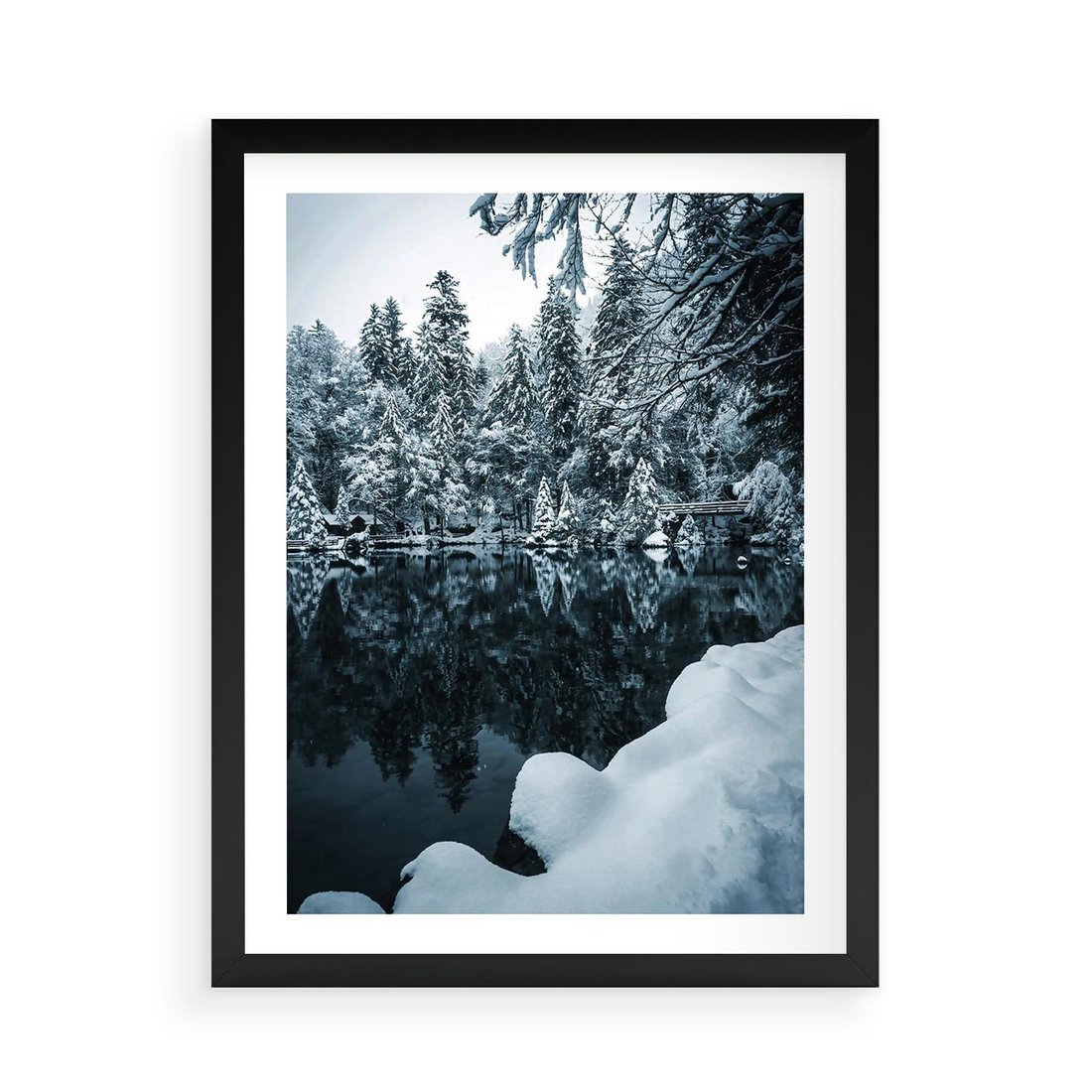 Plakat w ramie 50x70 - Zima nad Jeziorem - krajobraz zimowy, jezioro - rama czarna