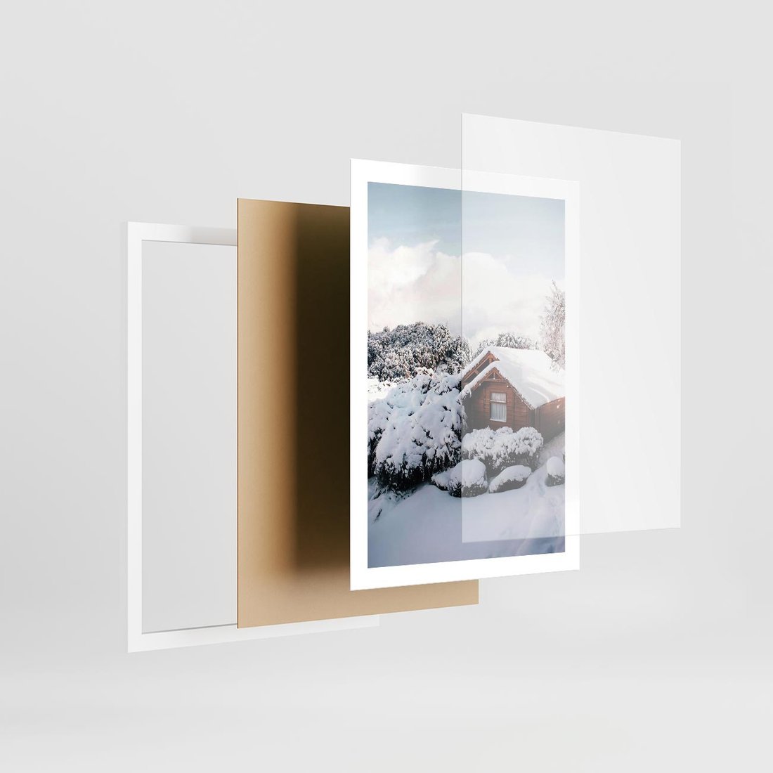 Plakat w ramie 50x70 - Zimowa Idylla w Górach - zima w górach, ośnieżone góry - rama biała
