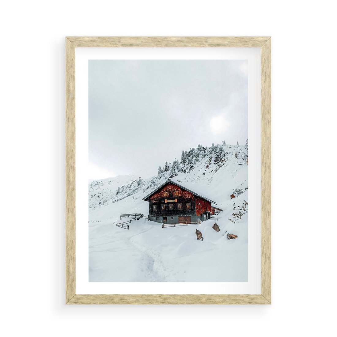 Plakat w ramie 50x70 - Zimowa Magia - domek, śnieg - rama drewno