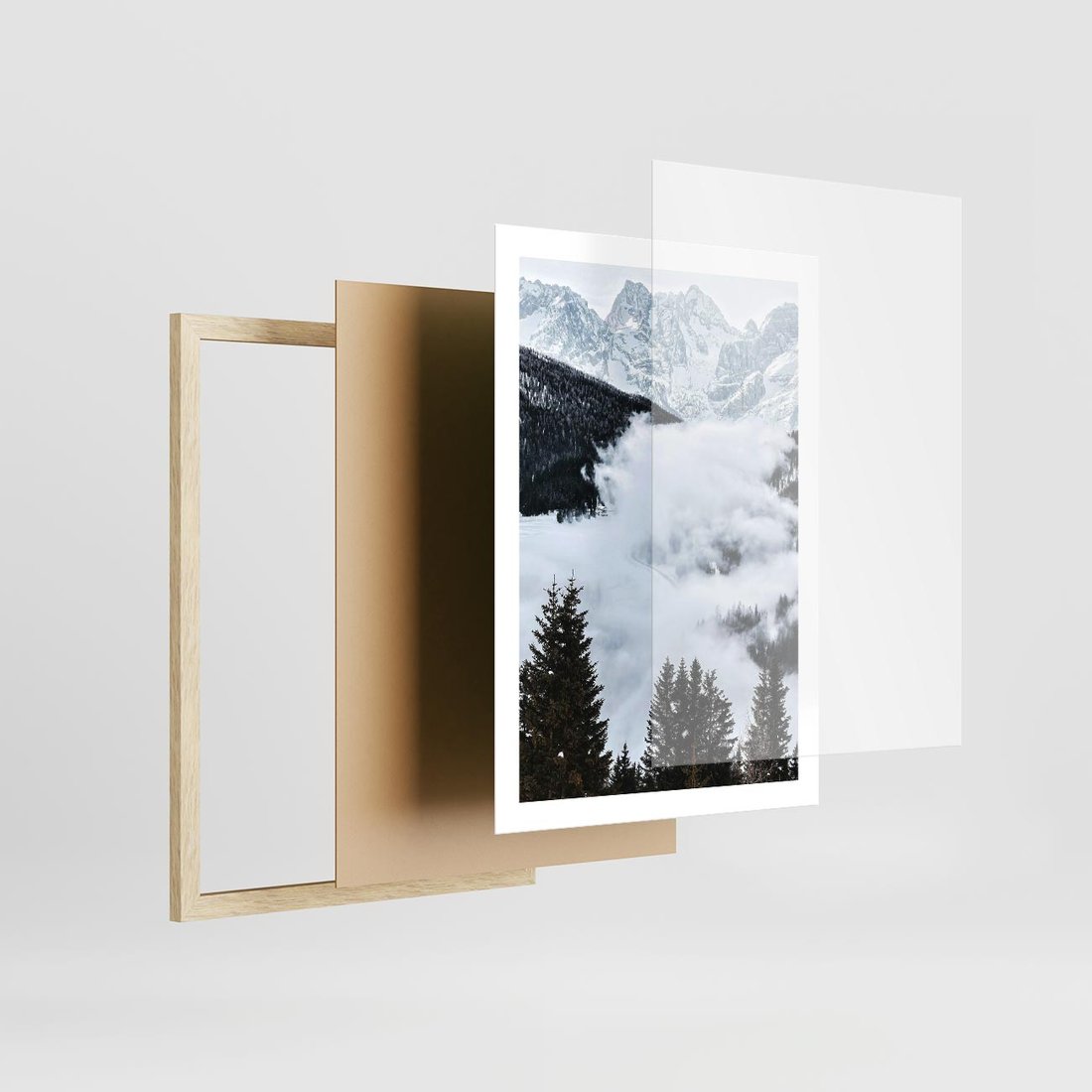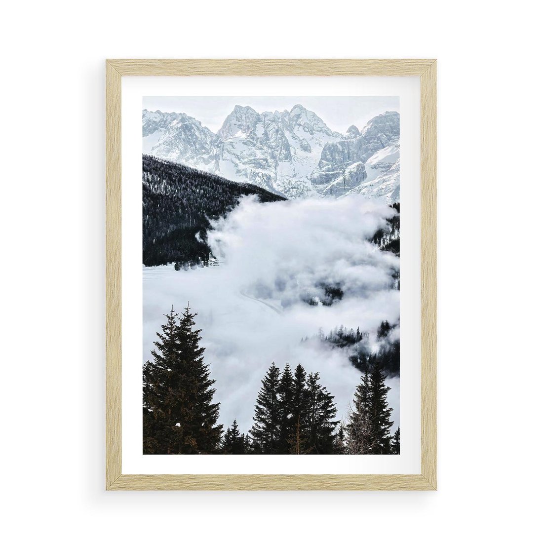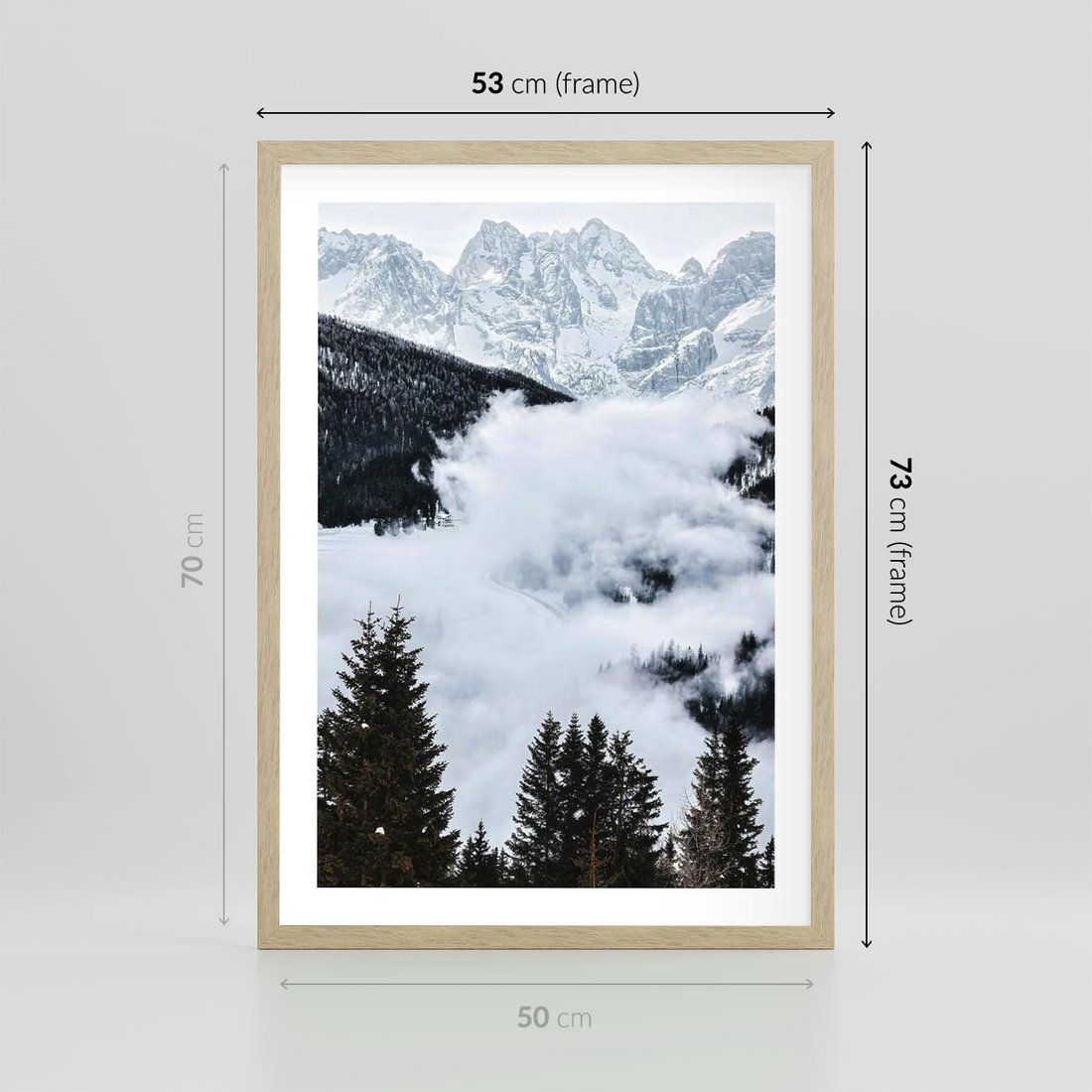 Plakat w ramie 50x70 - Zimowa Magia Gór: Śnieżne Szczyty - grajobraz górski, zima - rama drewno