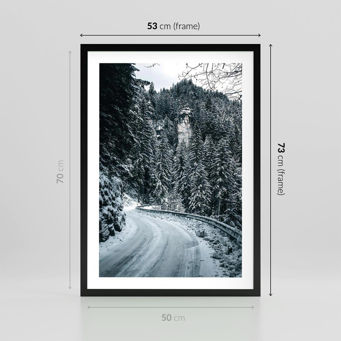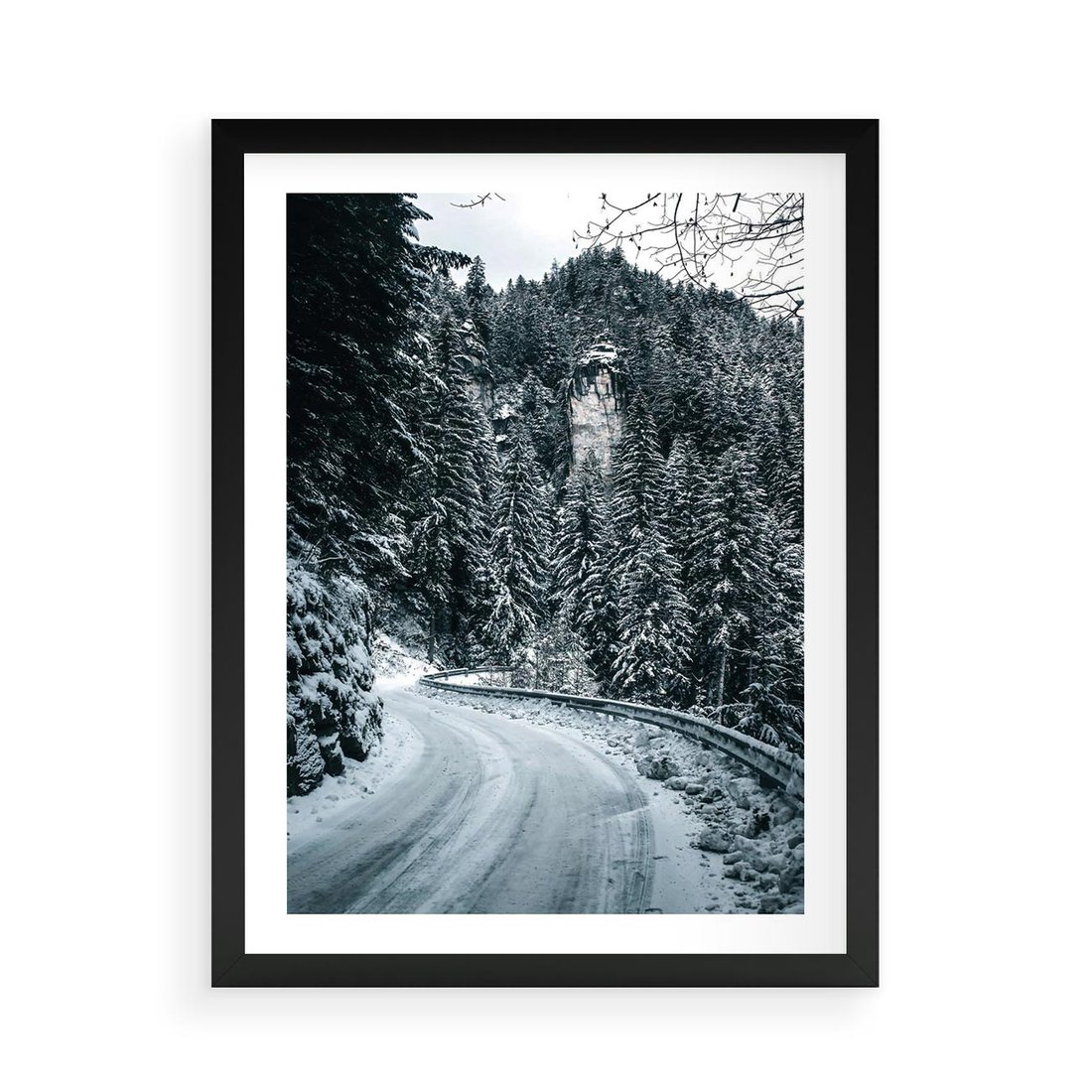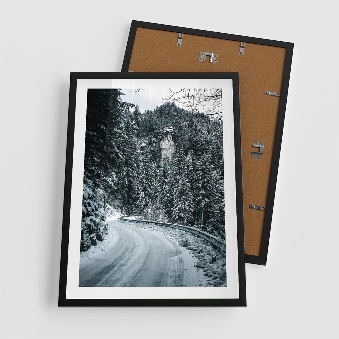 Plakat w ramie 50x70 - Zimowa Przygoda - zima w górach, droga - rama czarna