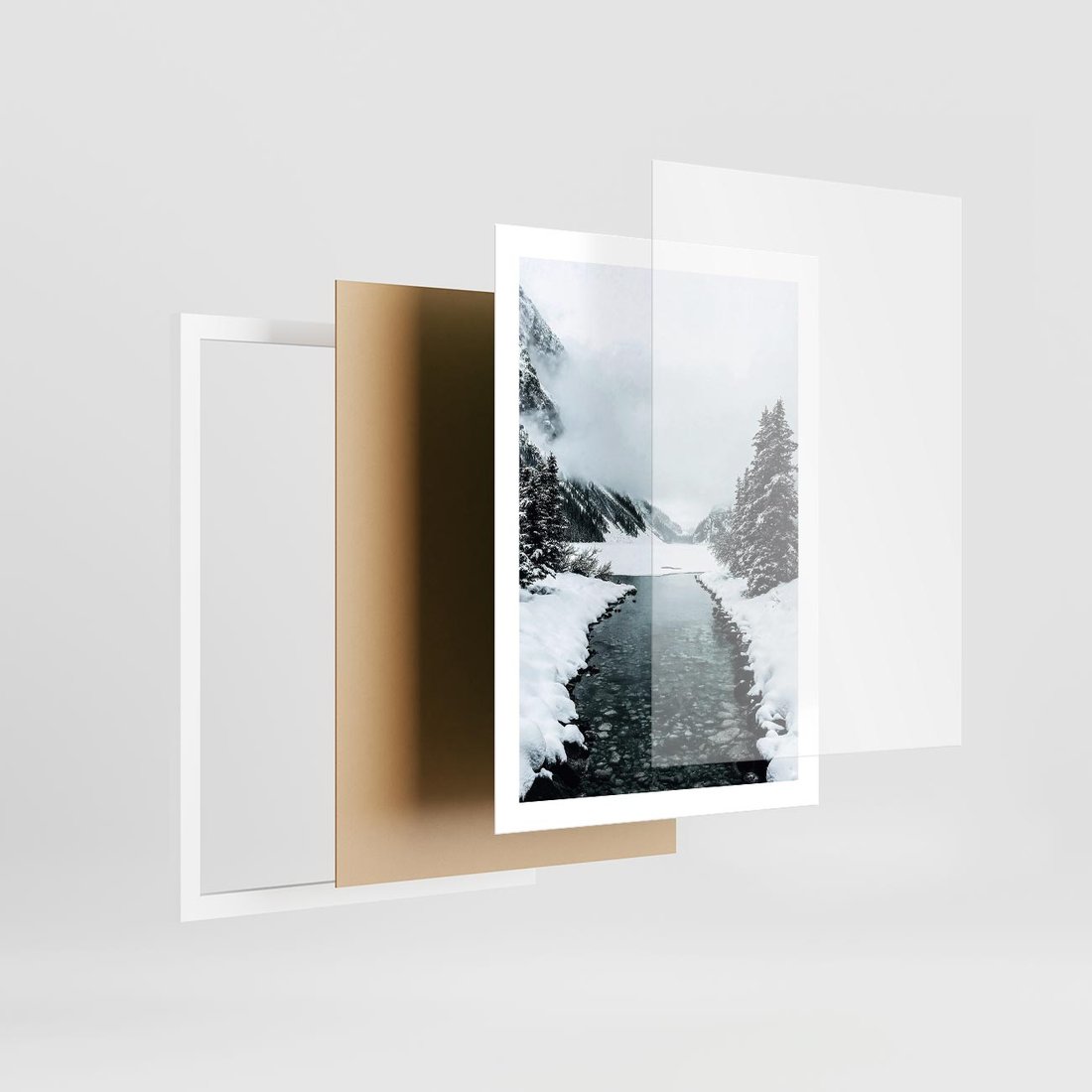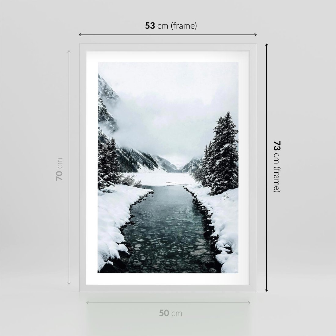 - Plakat w ramie 50x70 - Zimowa Przyroda: Rzeka, Góry i Śnieg