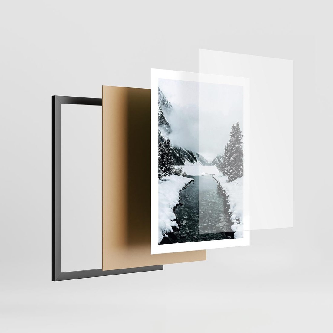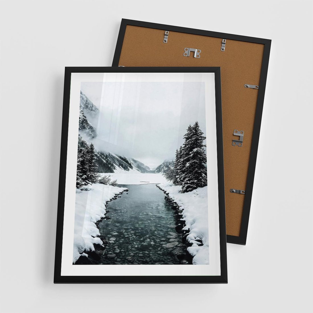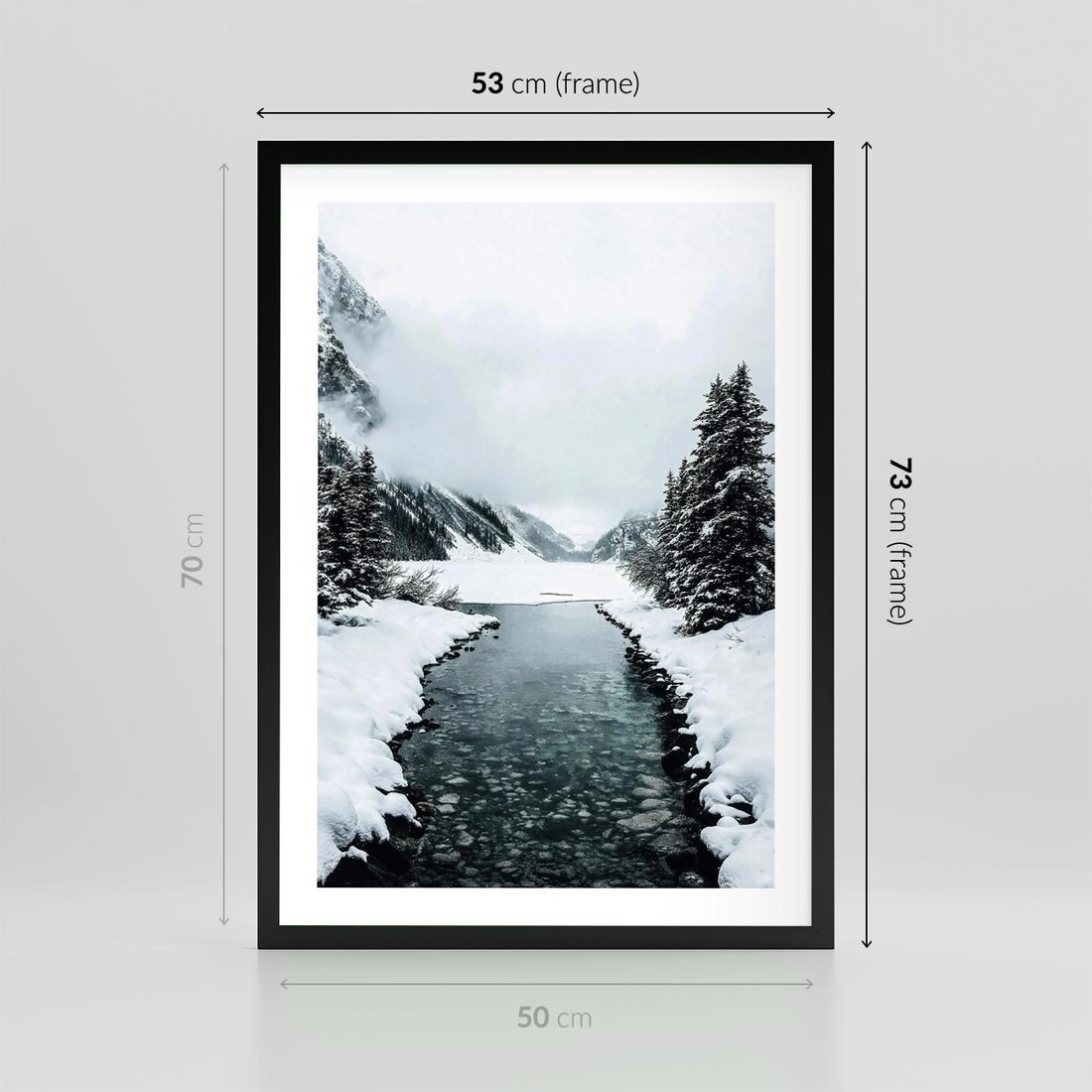 - Plakat w ramie 50x70 - Zimowa Przyroda: Rzeka, Góry i Śnieg