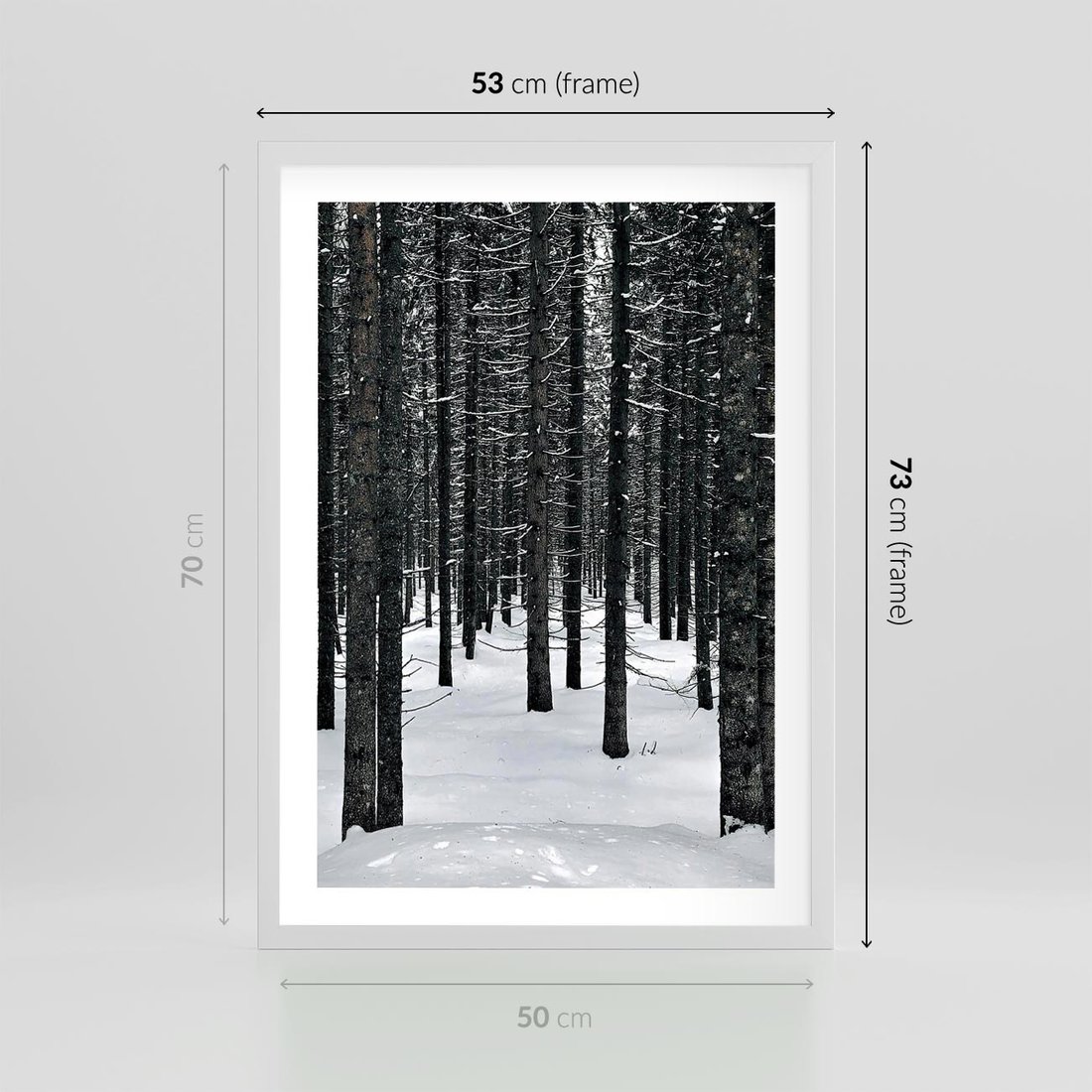 - Plakat w ramie 50x70 - Zimowe Drzewa: Śnieg na Pniach