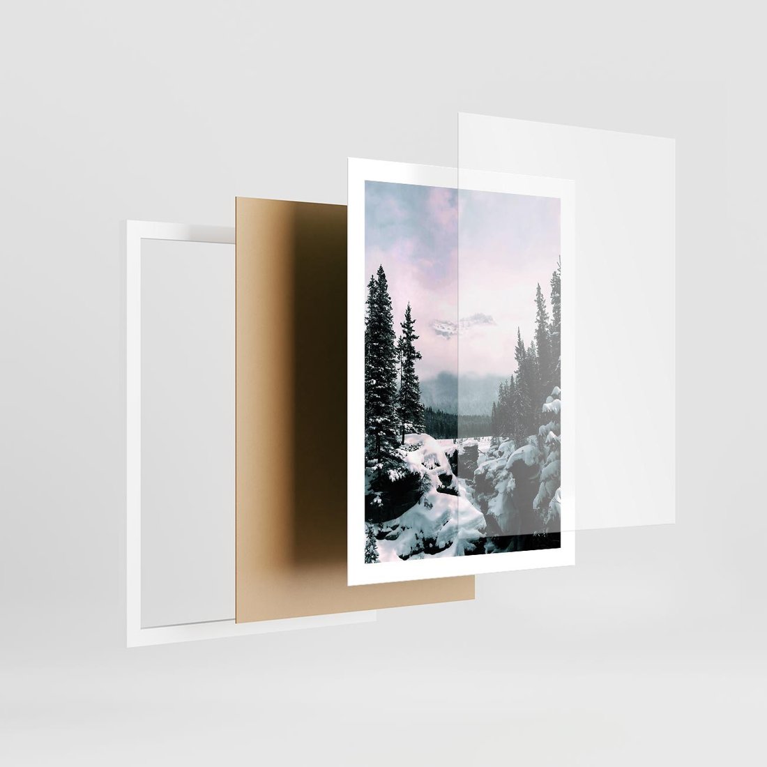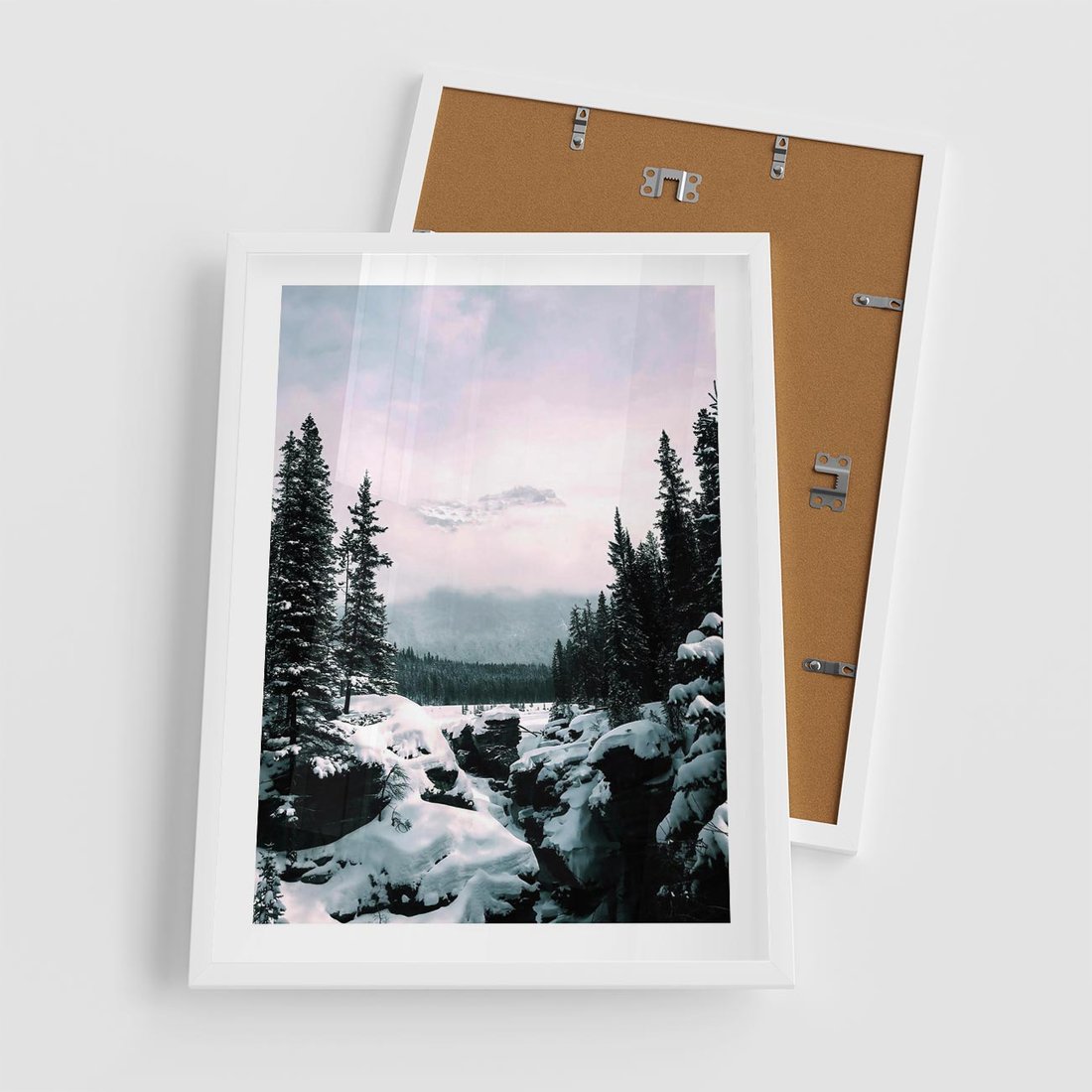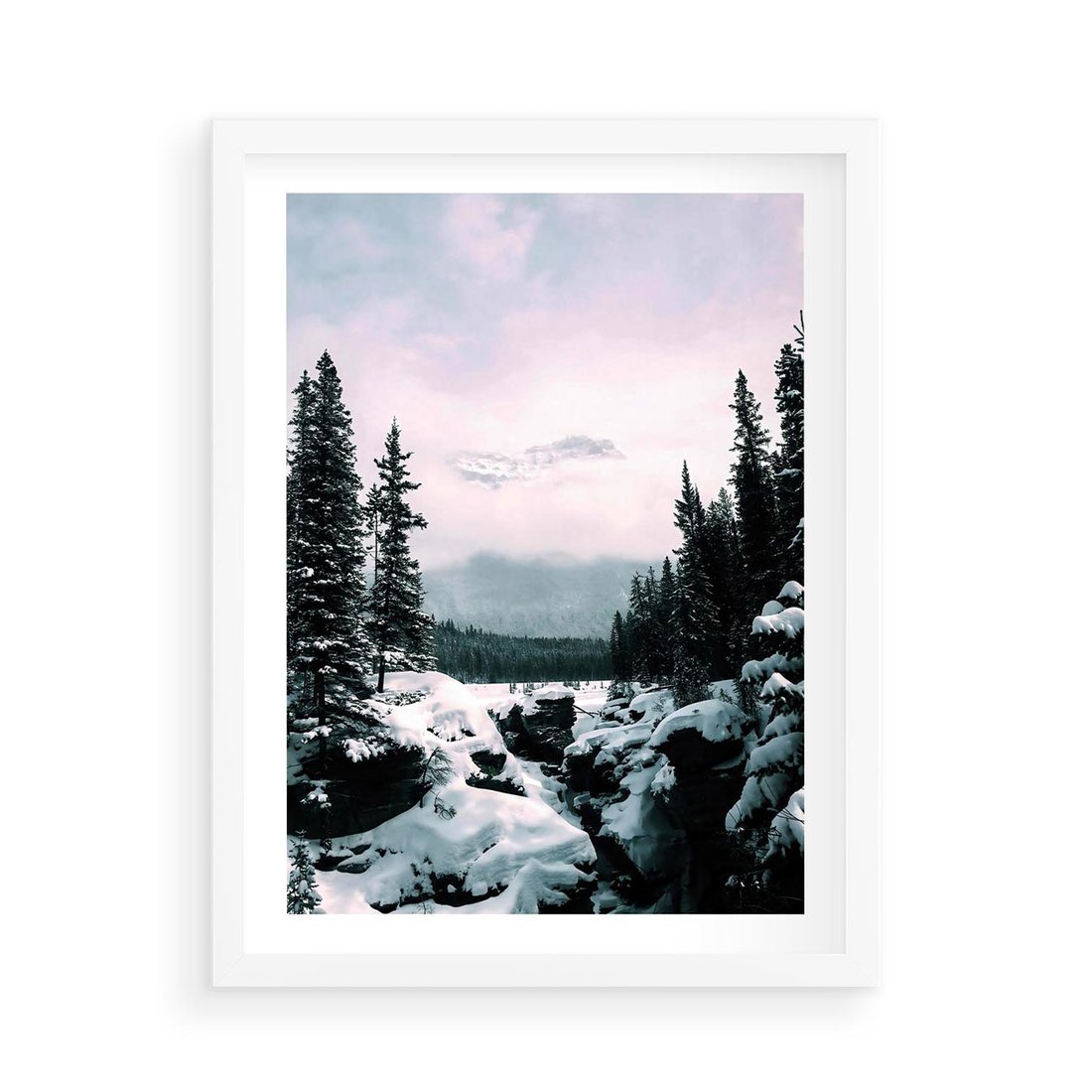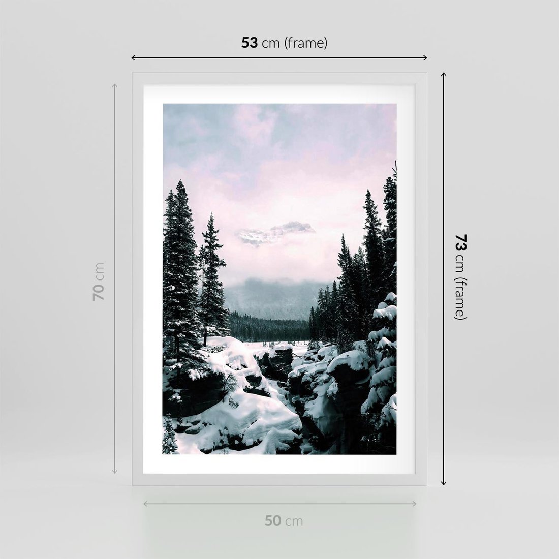 Plakat w ramie 50x70 - Zimowe Góry - zimowy krajobraz, góry - rama biała