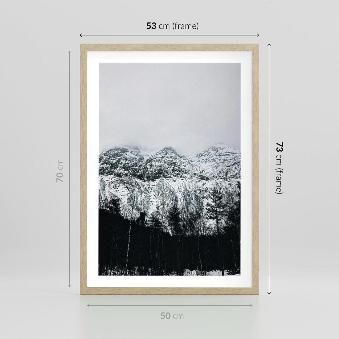 Plakat w ramie 50x70 - Zimowe Uroki Gór - góry ośnieżone, krajobraz górski - rama drewno