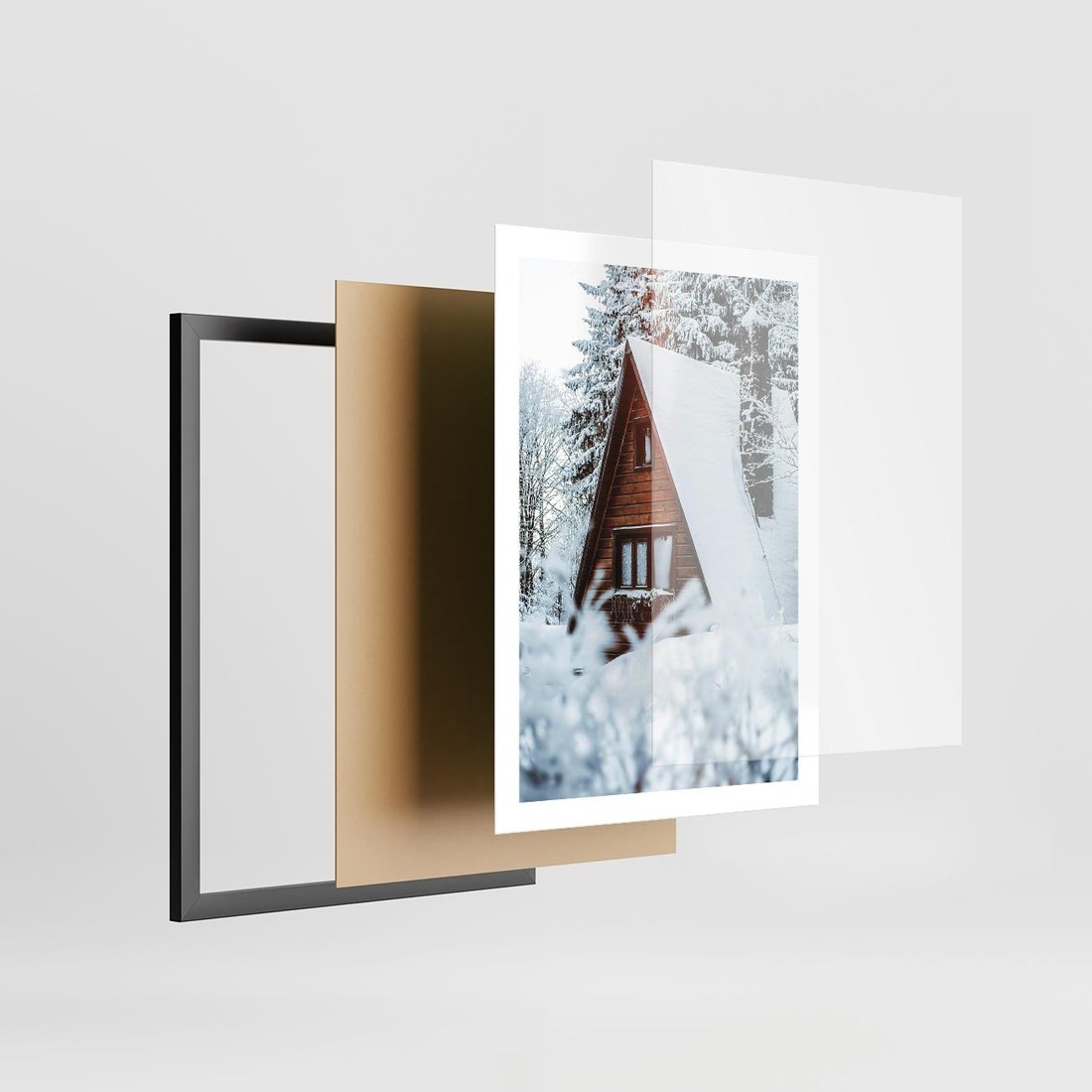 Plakat w ramie 50x70 - Zimowe Ustronie w Lesie - domek w lesie, zimowy las - rama czarna