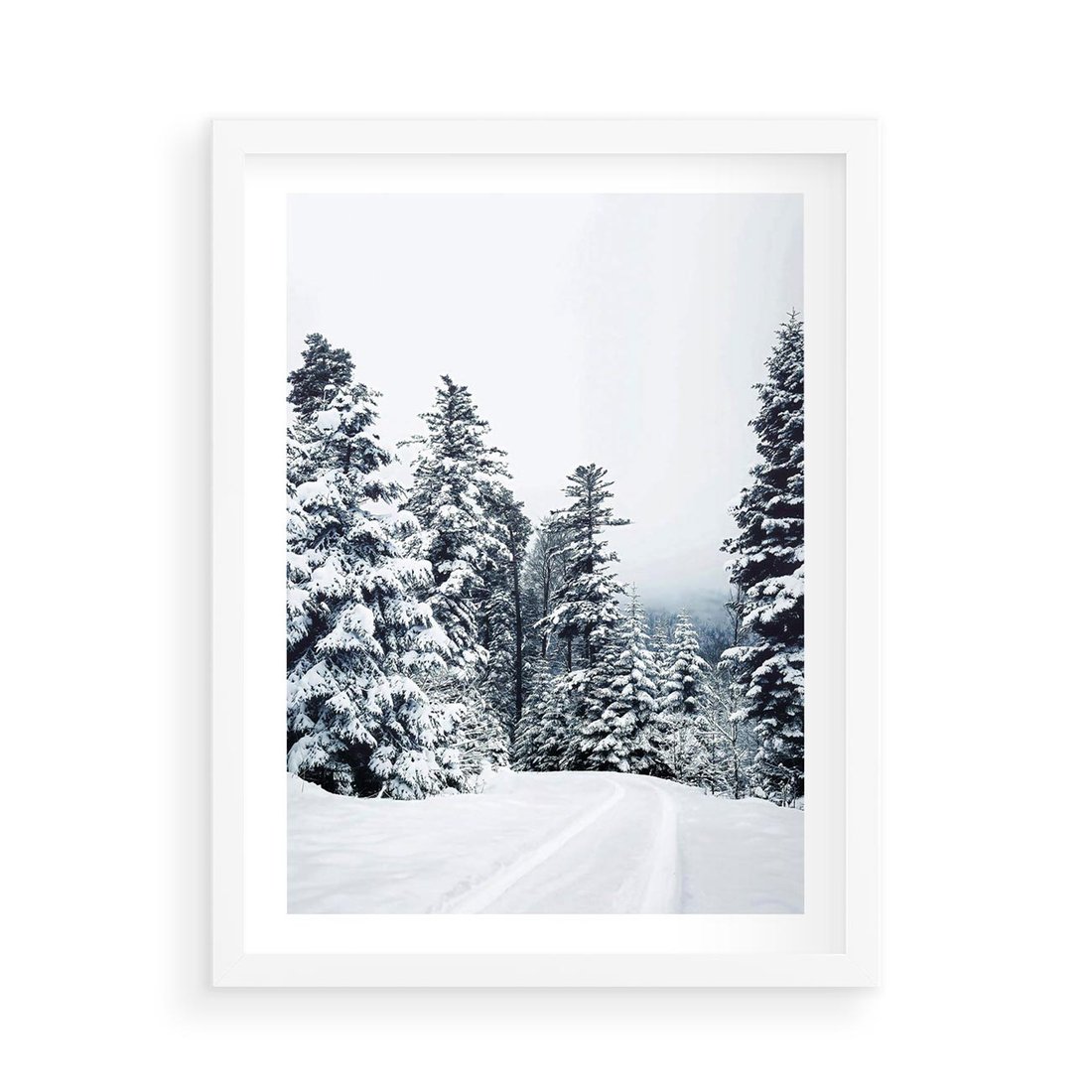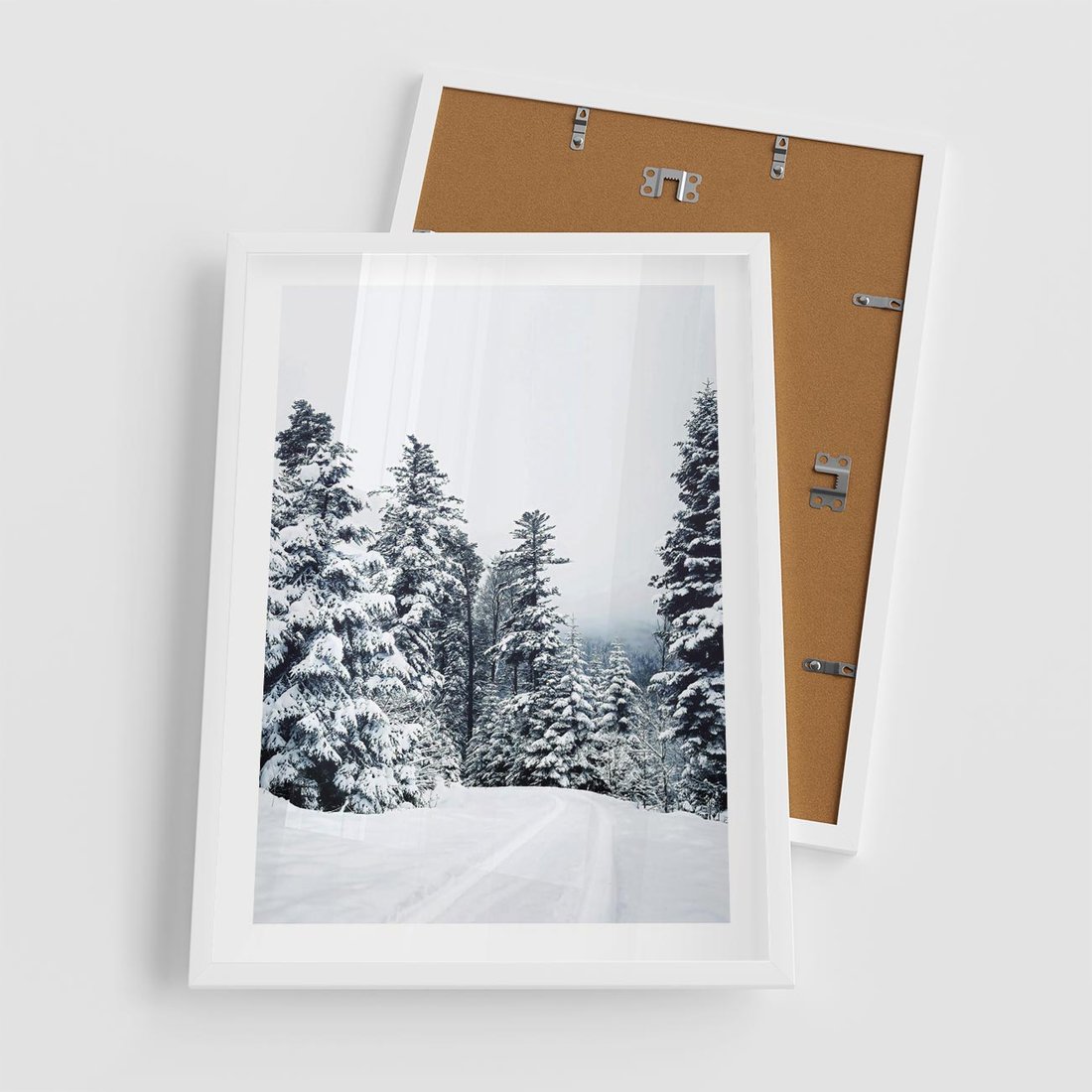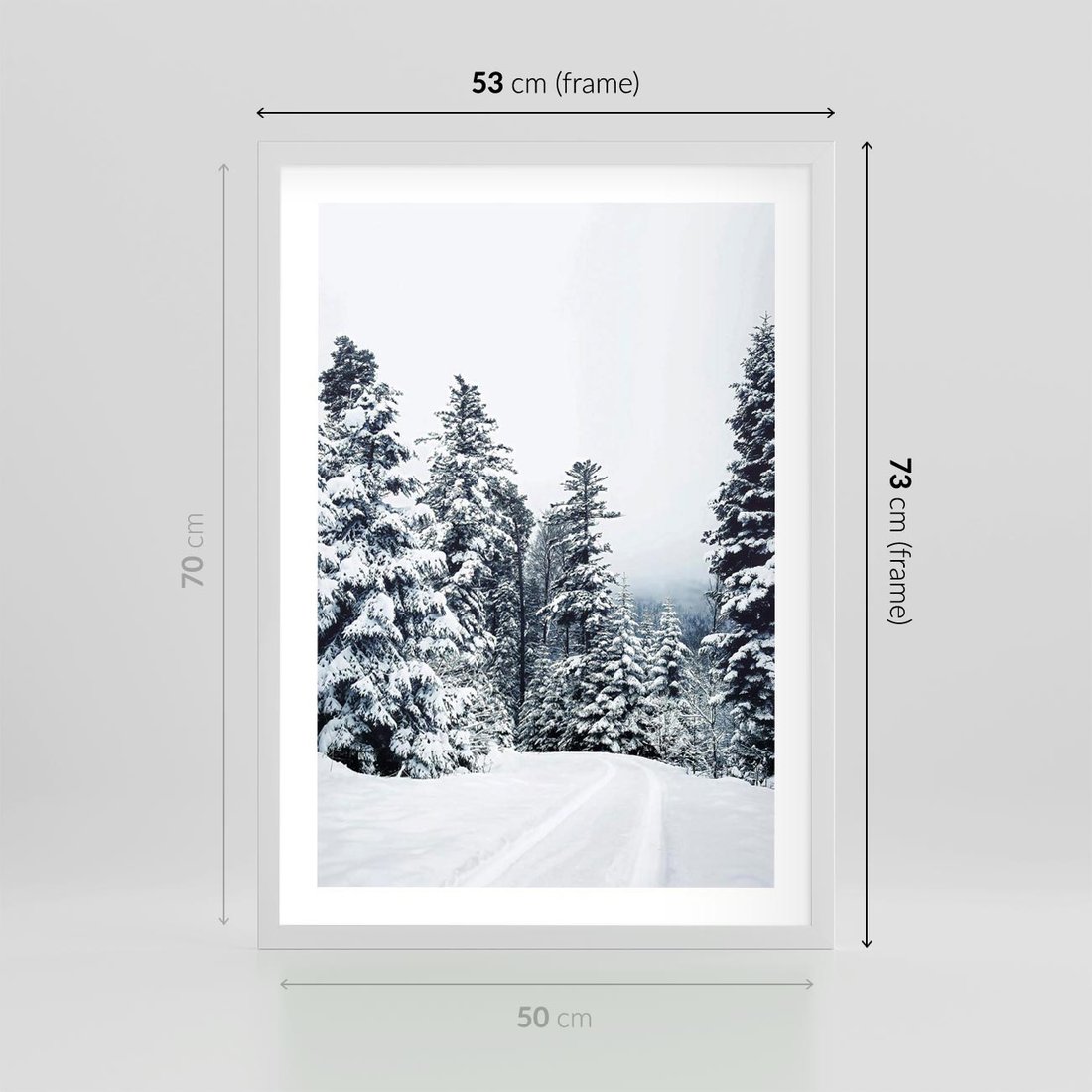 Plakat w ramie 50x70 - Zimowy Las Pod Kołdrą - las, zima - rama biała