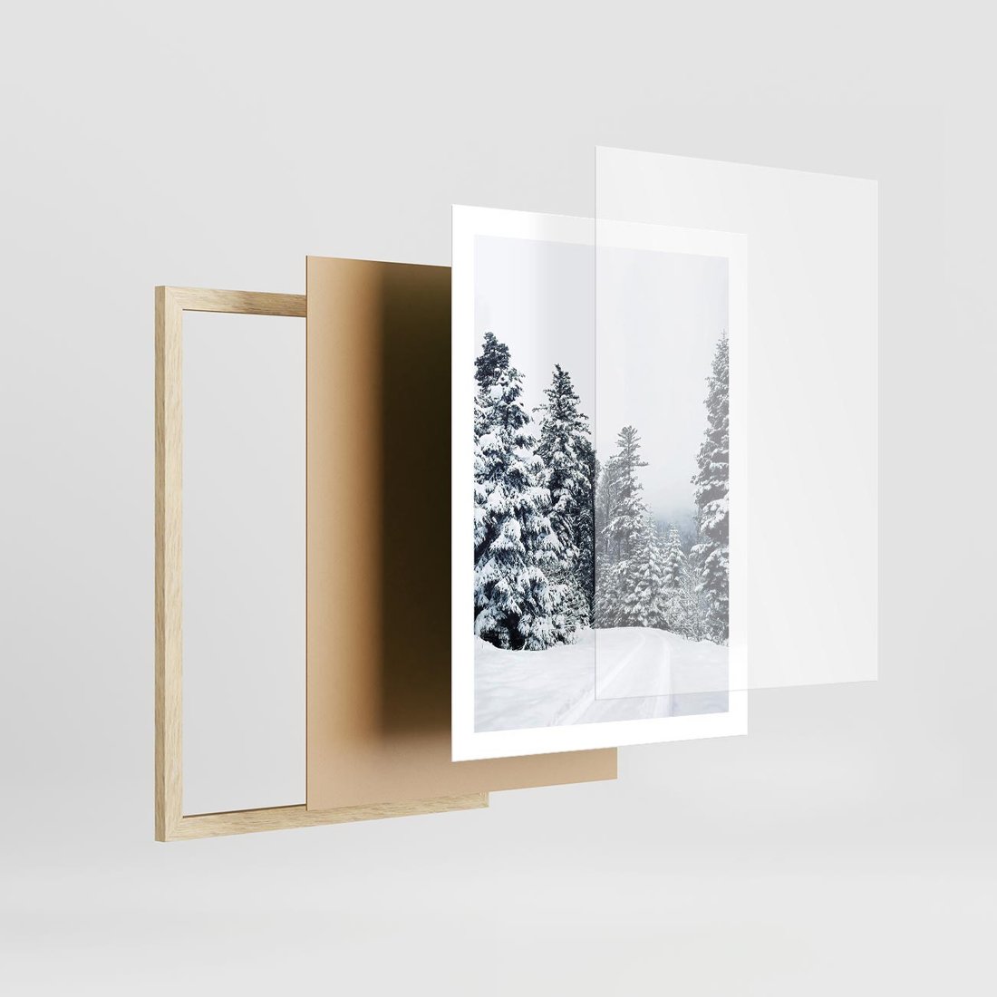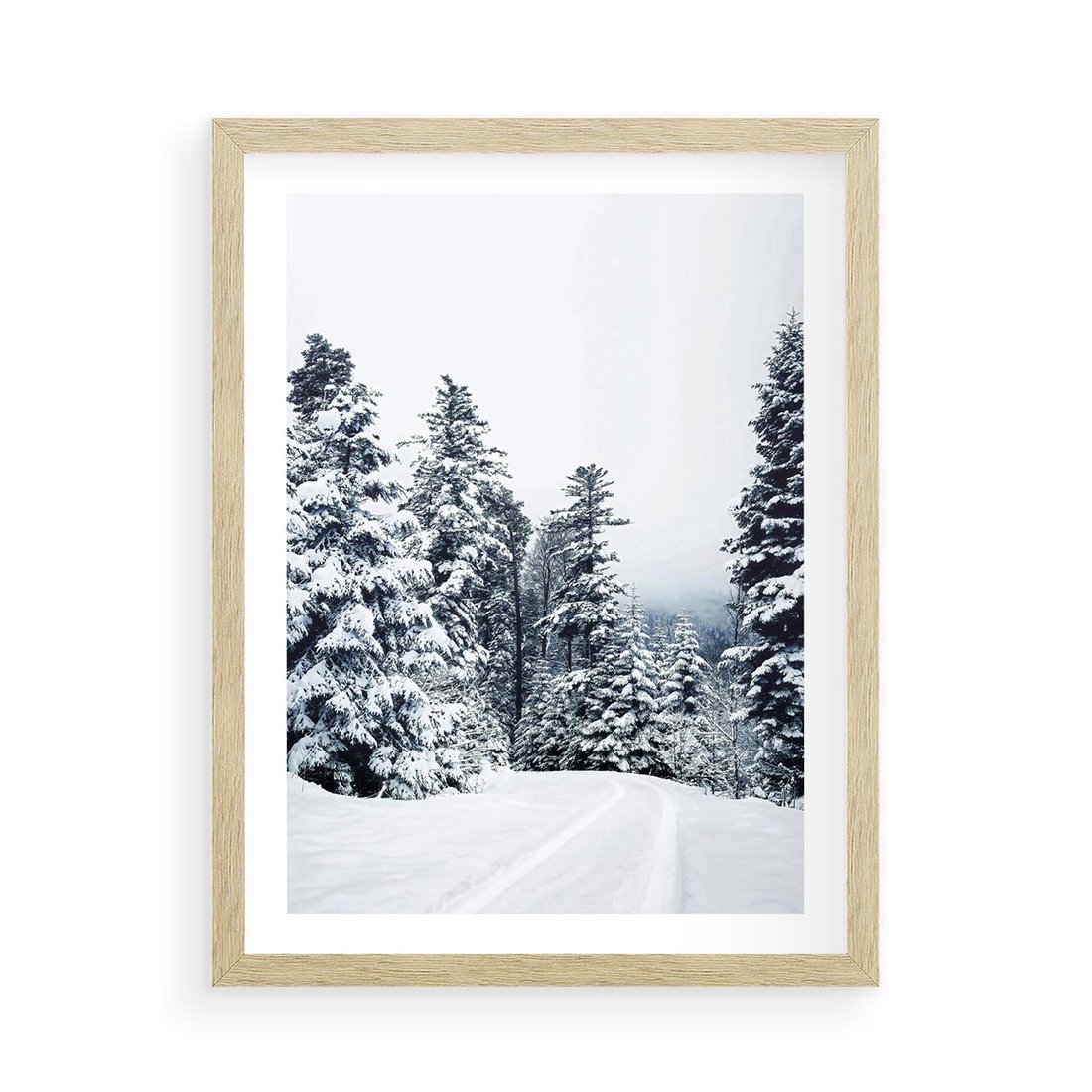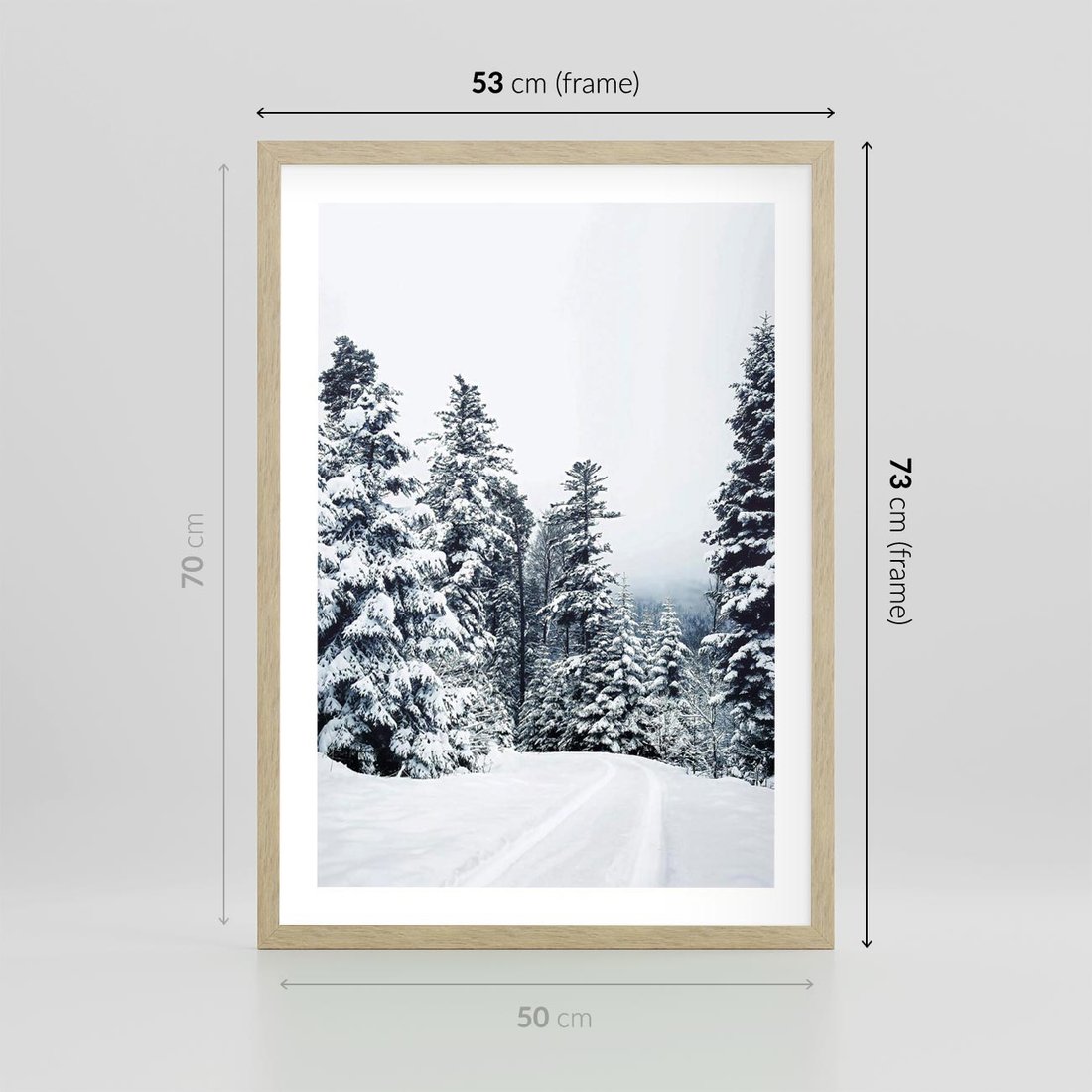 Plakat w ramie 50x70 - Zimowy Las Pod Kołdrą - las, zima - rama drewno