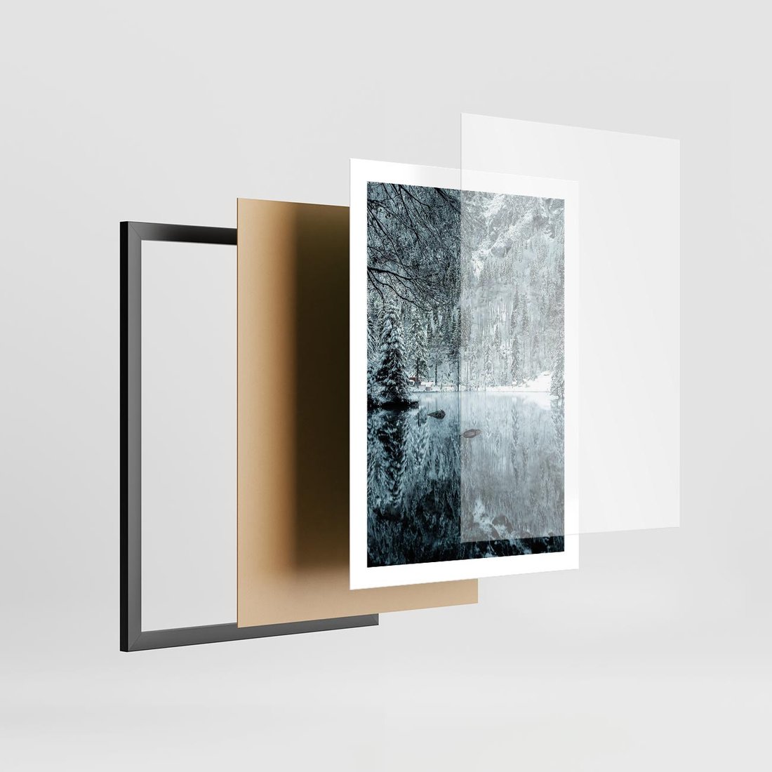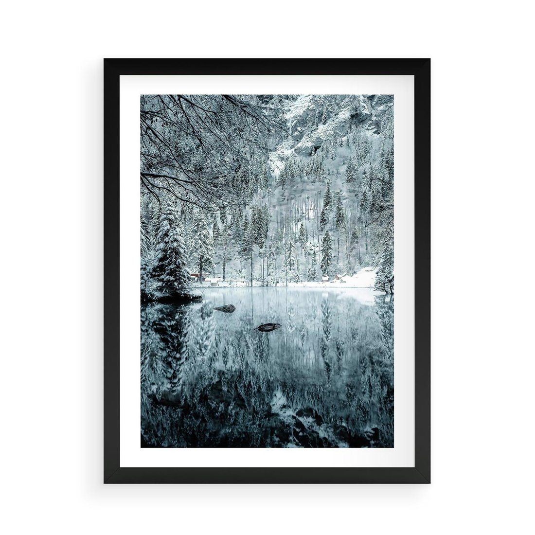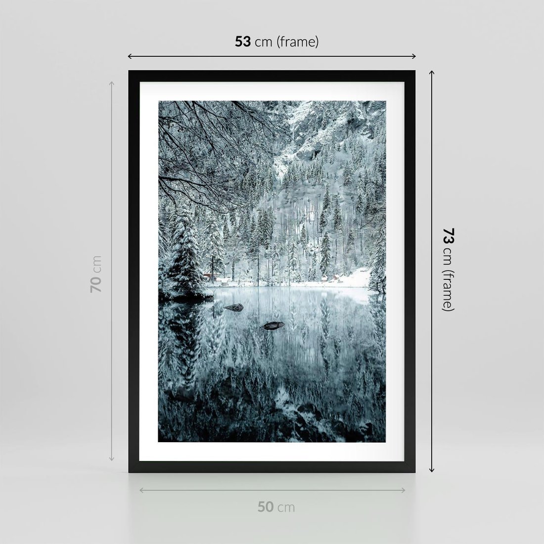 Plakat w ramie 50x70 - Zimowy Raj - zimowy górski krajobraz, jezioro w górach - rama czarna