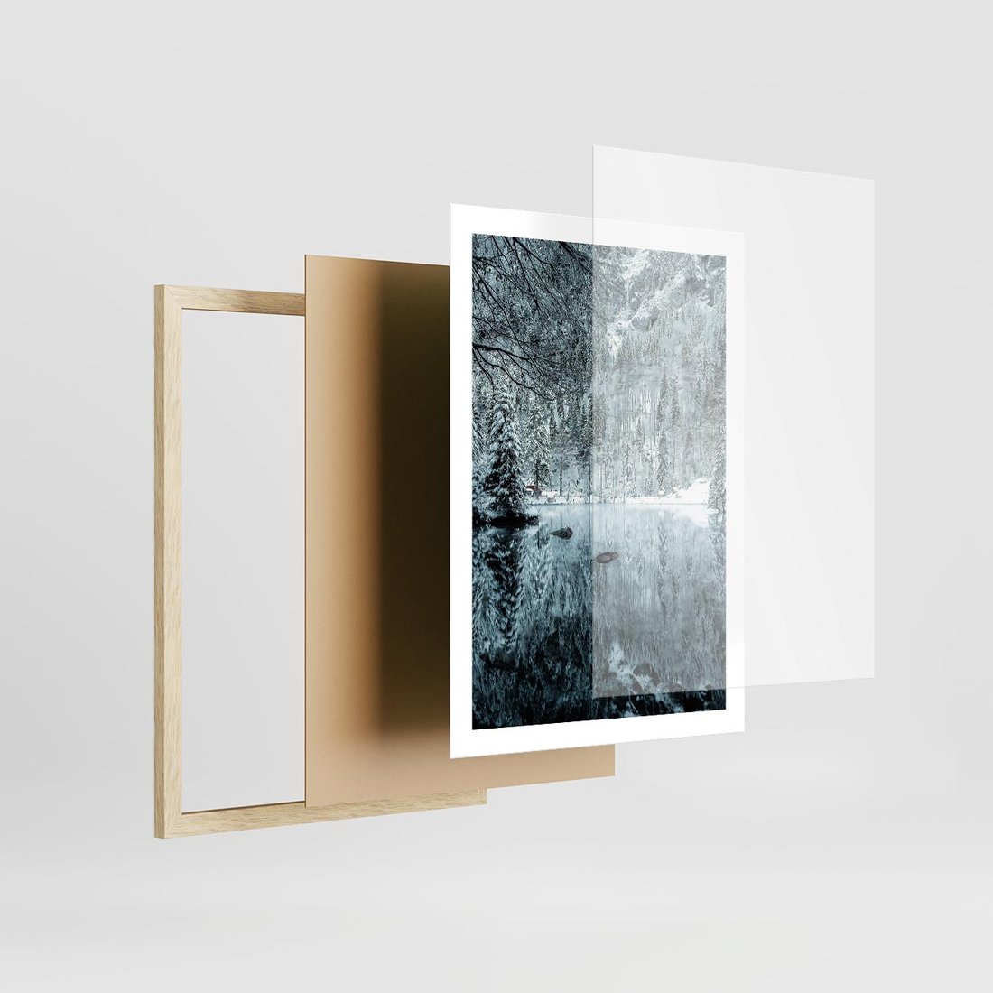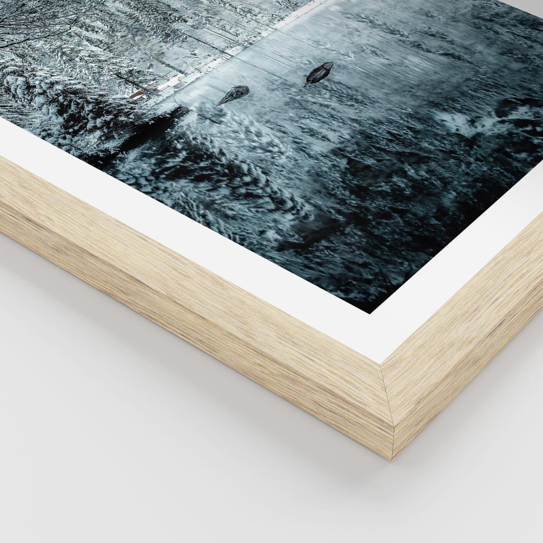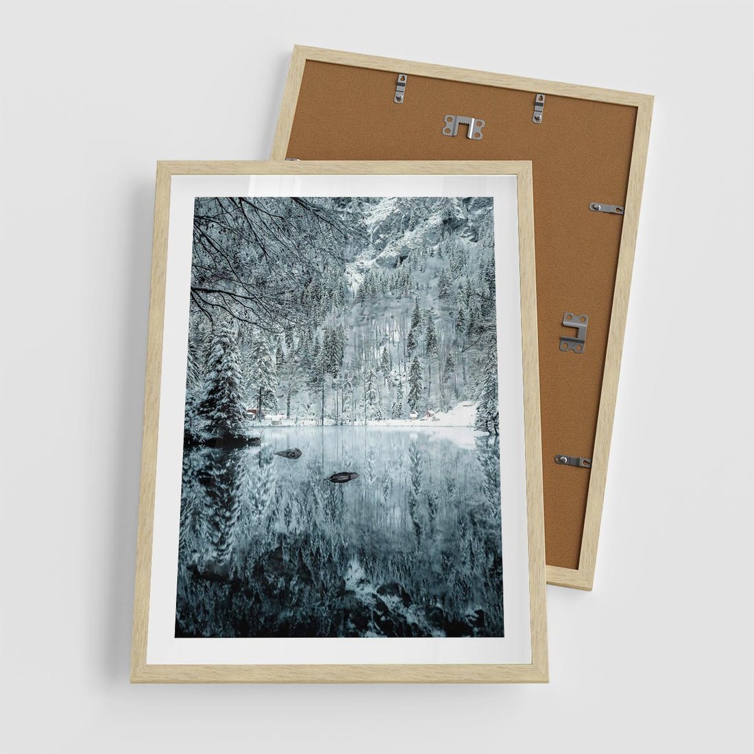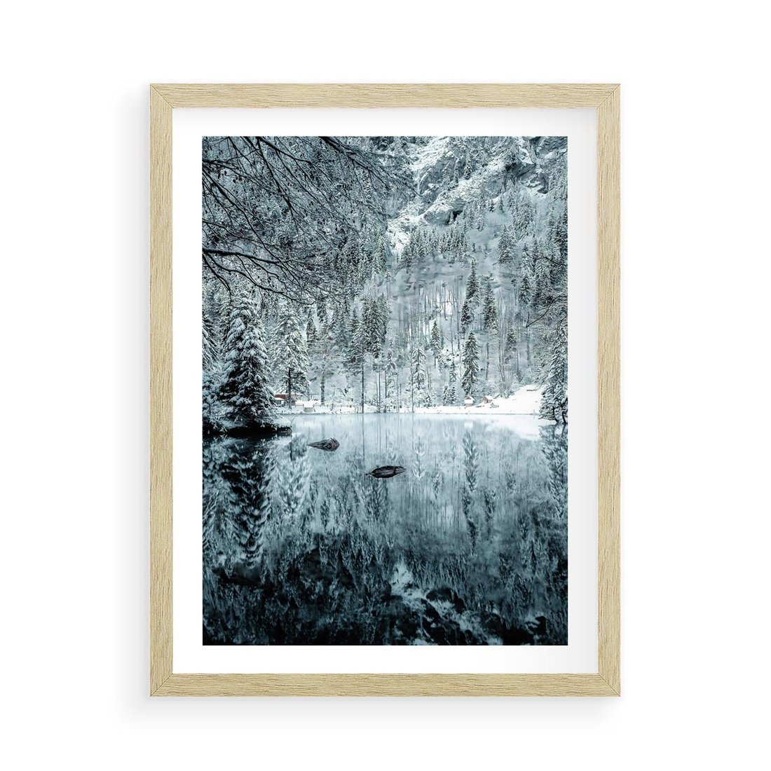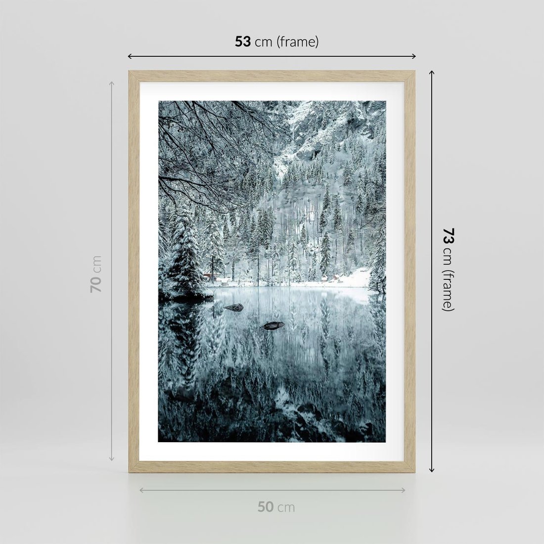 Plakat w ramie 50x70 - Zimowy Raj - zimowy górski krajobraz, jezioro w górach - rama drewno