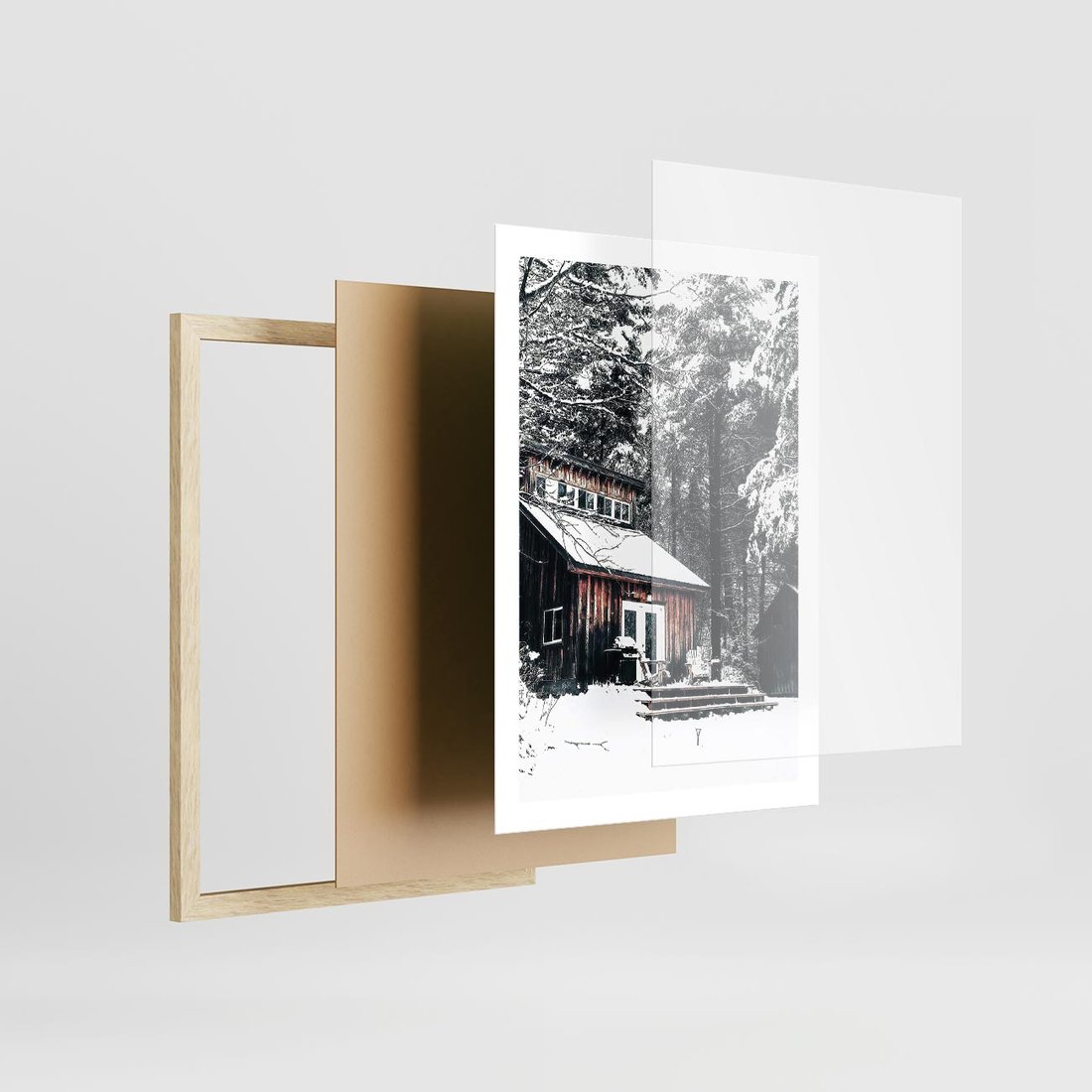 - Plakat w ramie 50x70 - Zimowy Urok Drewnianego Domku