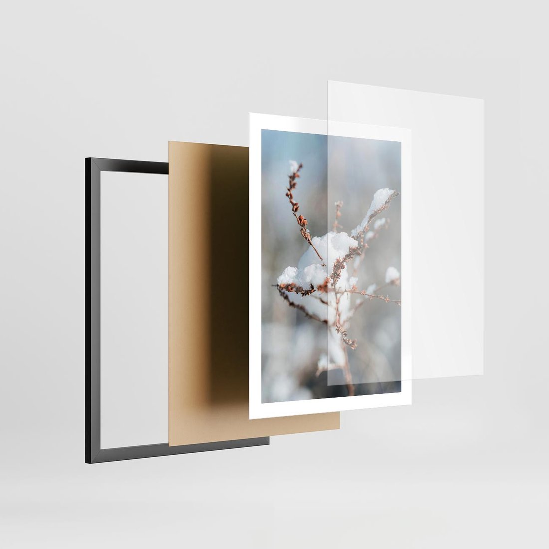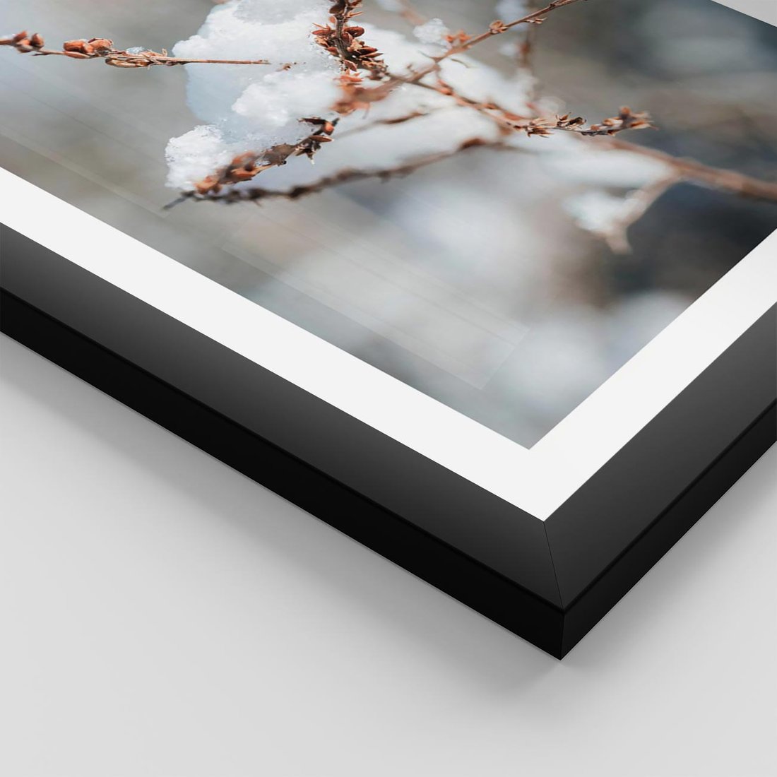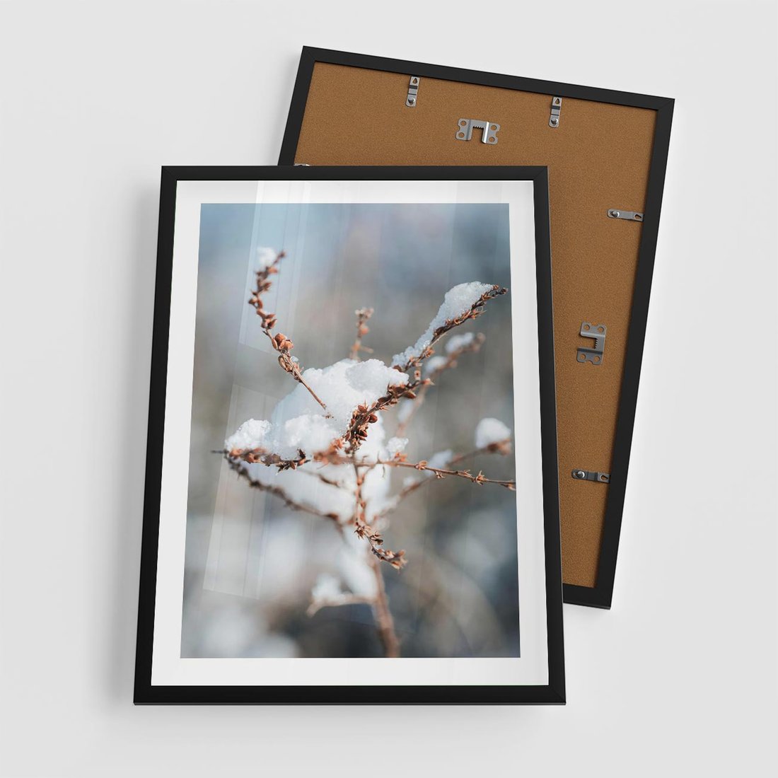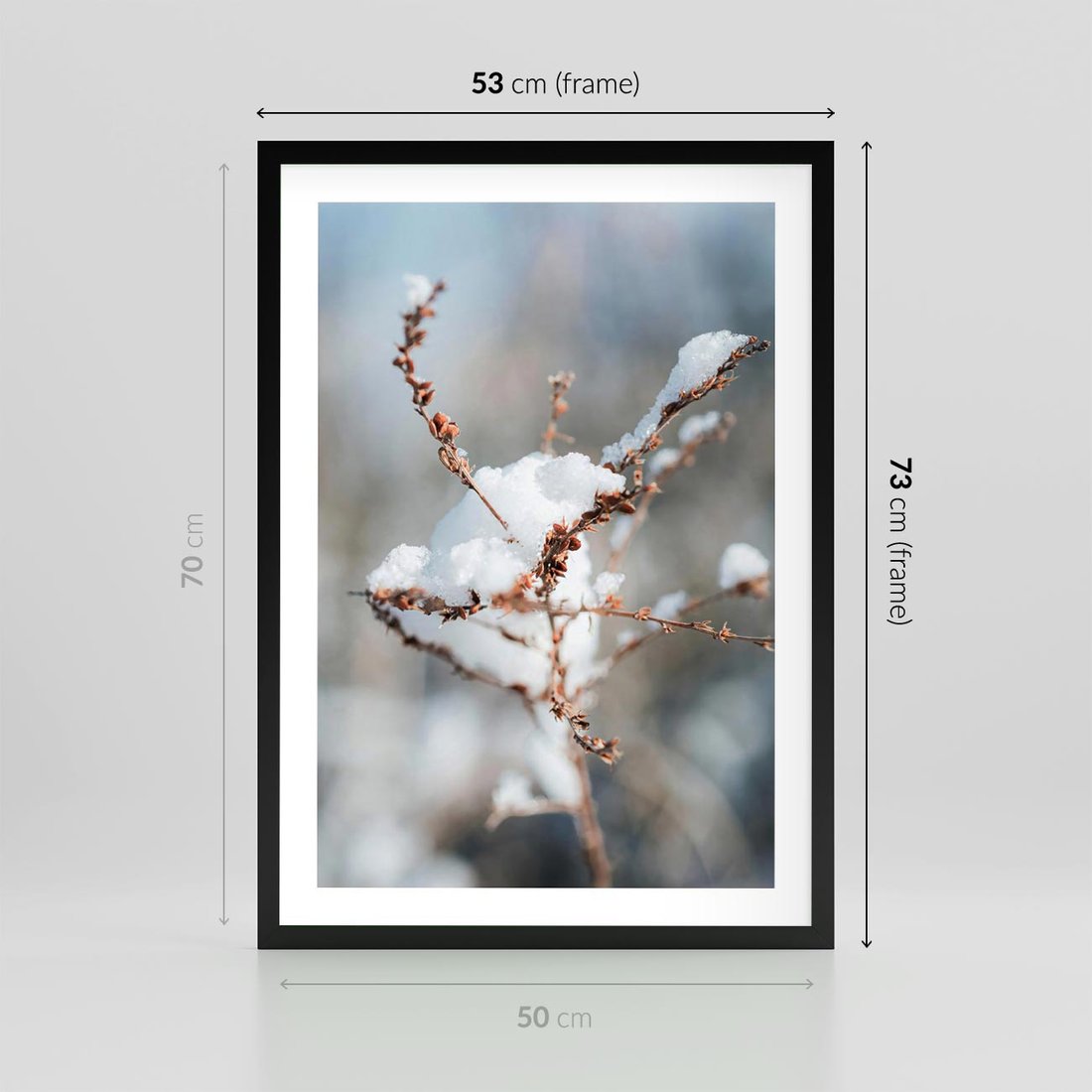 Plakat w ramie 50x70 - Zimowy Urok Natury - gałązki pod śniegiem, natura - rama czarna