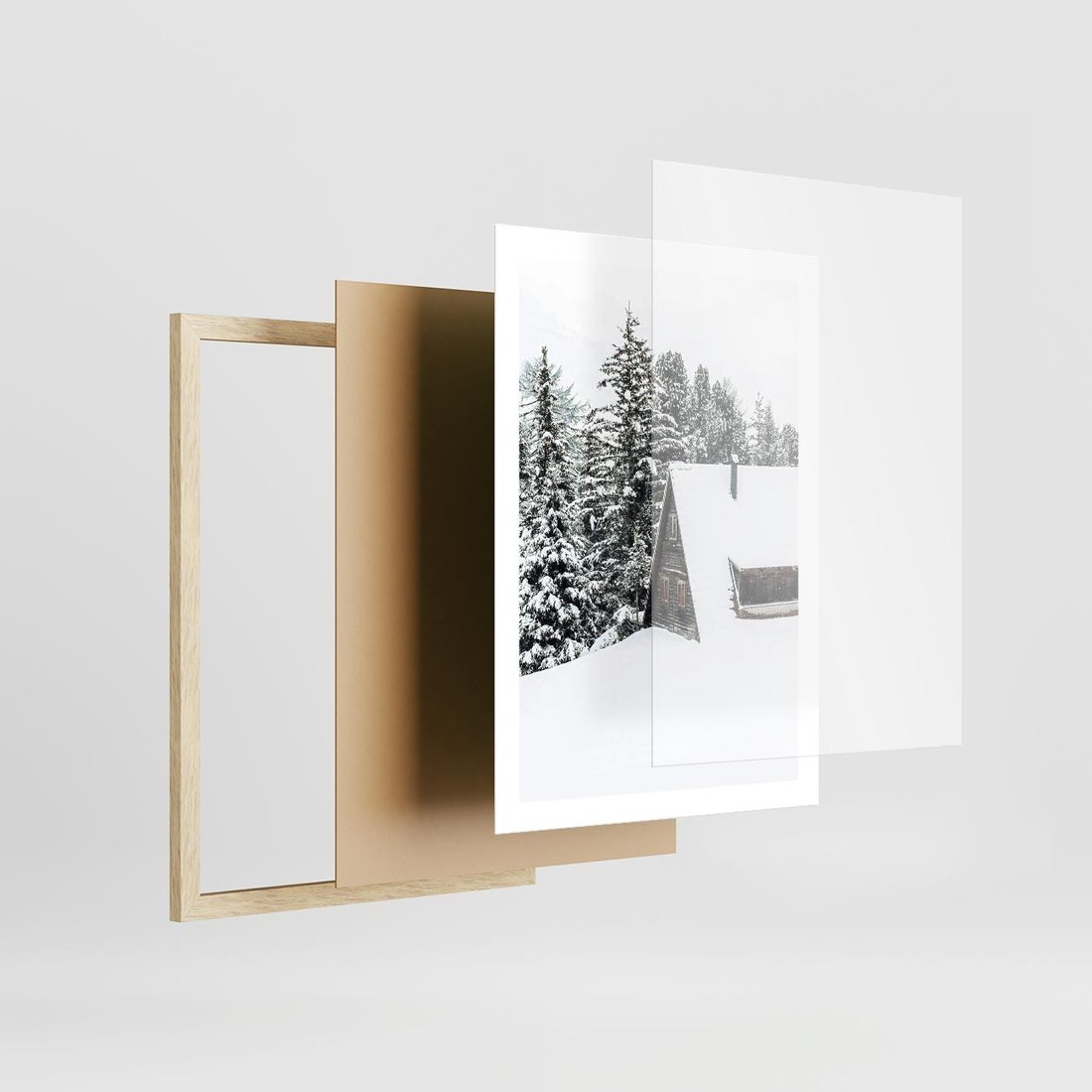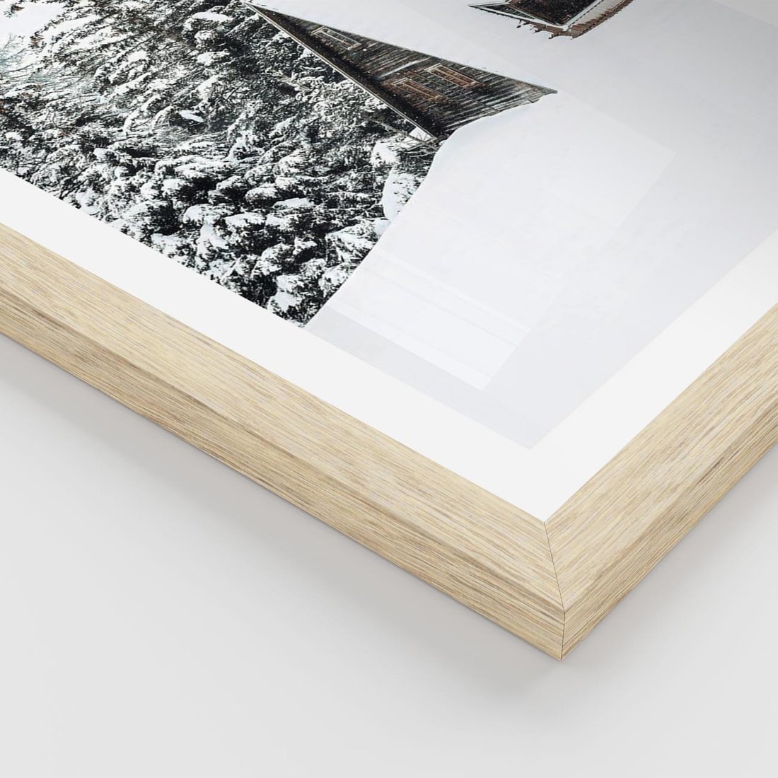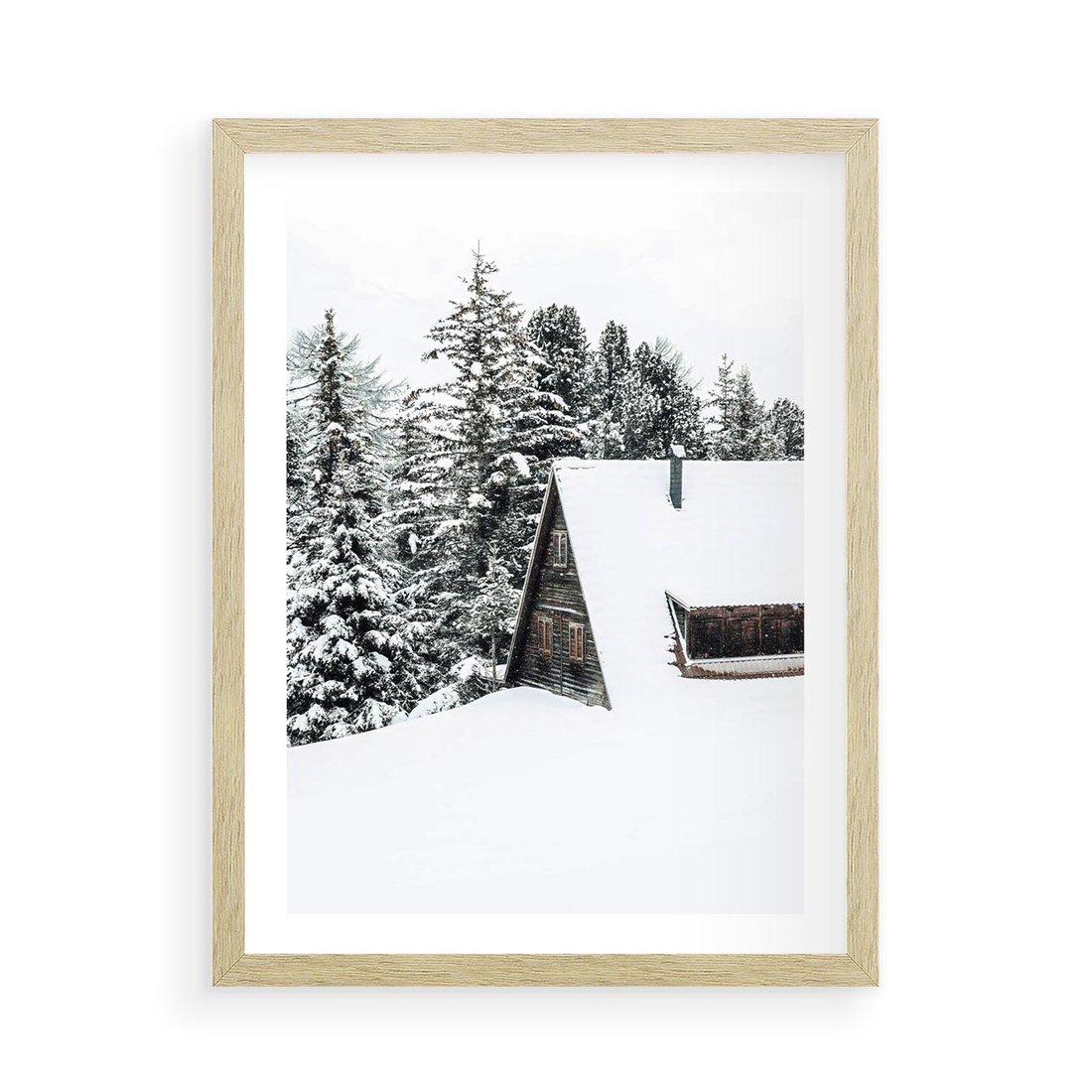 Plakat w ramie 50x70 - Zimowy Urok - śnieg, domek w górach - rama drewno