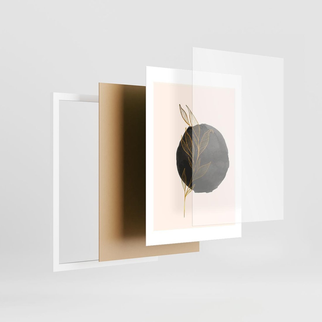 • Plakat w ramie 50x70 - Złota Gałązka na Tle Akwarelowej Ciemności