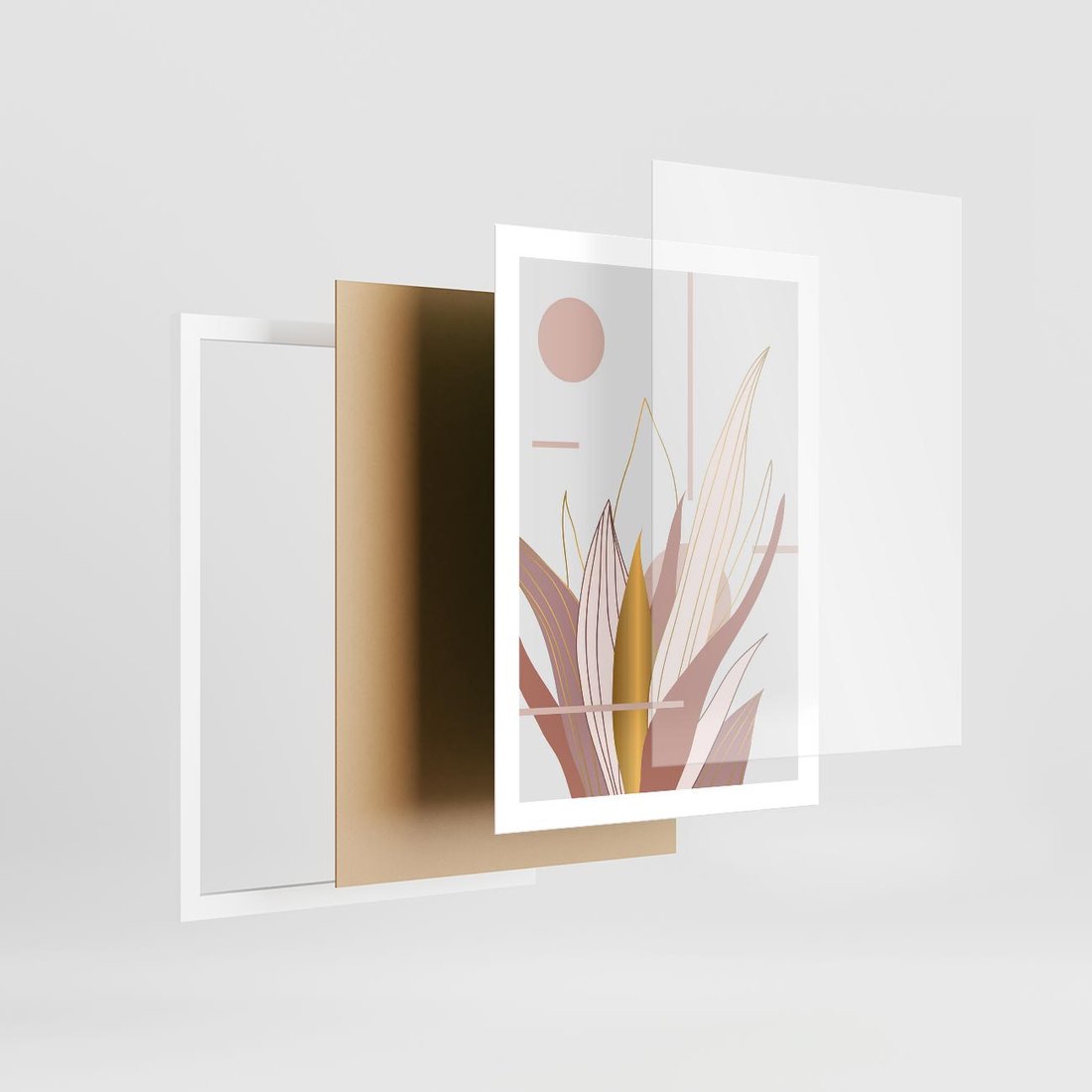 - Plakat w ramie 50x70 - Złota Grafika Liści: Wyjątkowa Dekoracja