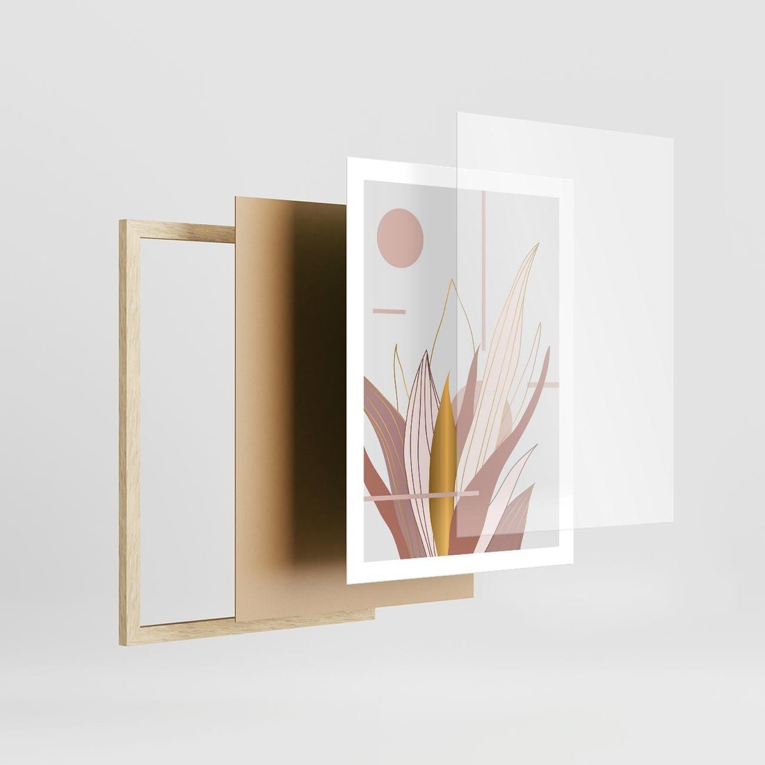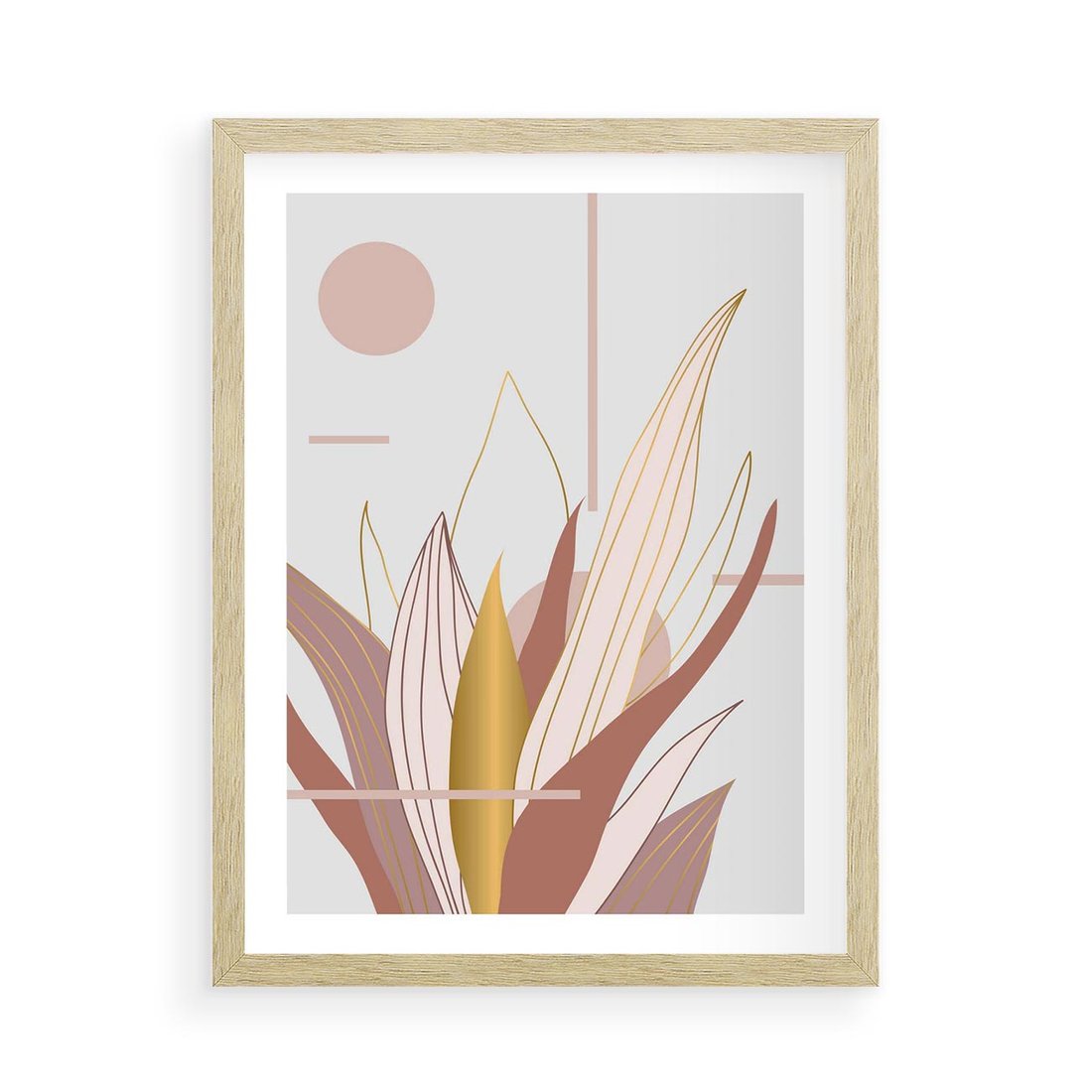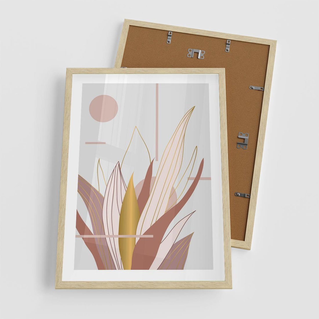 - Plakat w ramie 50x70 - Złota Grafika Liści: Wyjątkowa Dekoracja