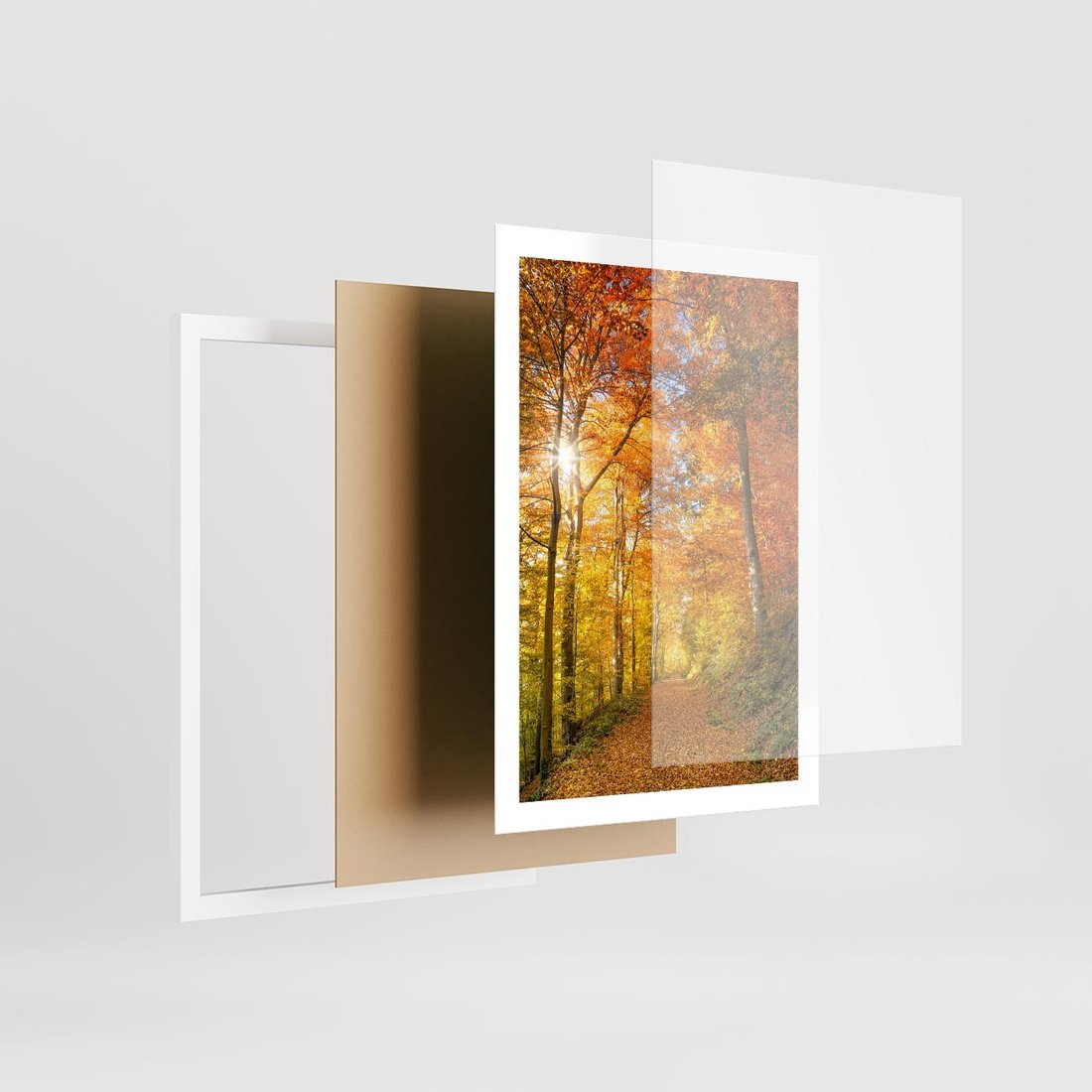 Plakat w ramie 50x70 - Złote barwy jesiennego lasu - las, jesień - rama biała