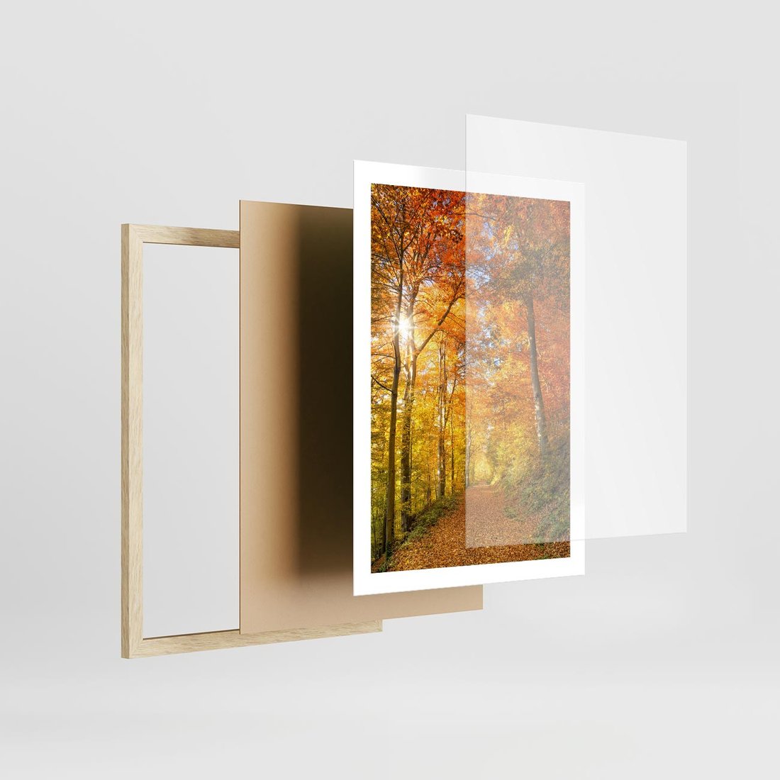 Plakat w ramie 50x70 - Złote barwy jesiennego lasu - las, jesień - rama drewno