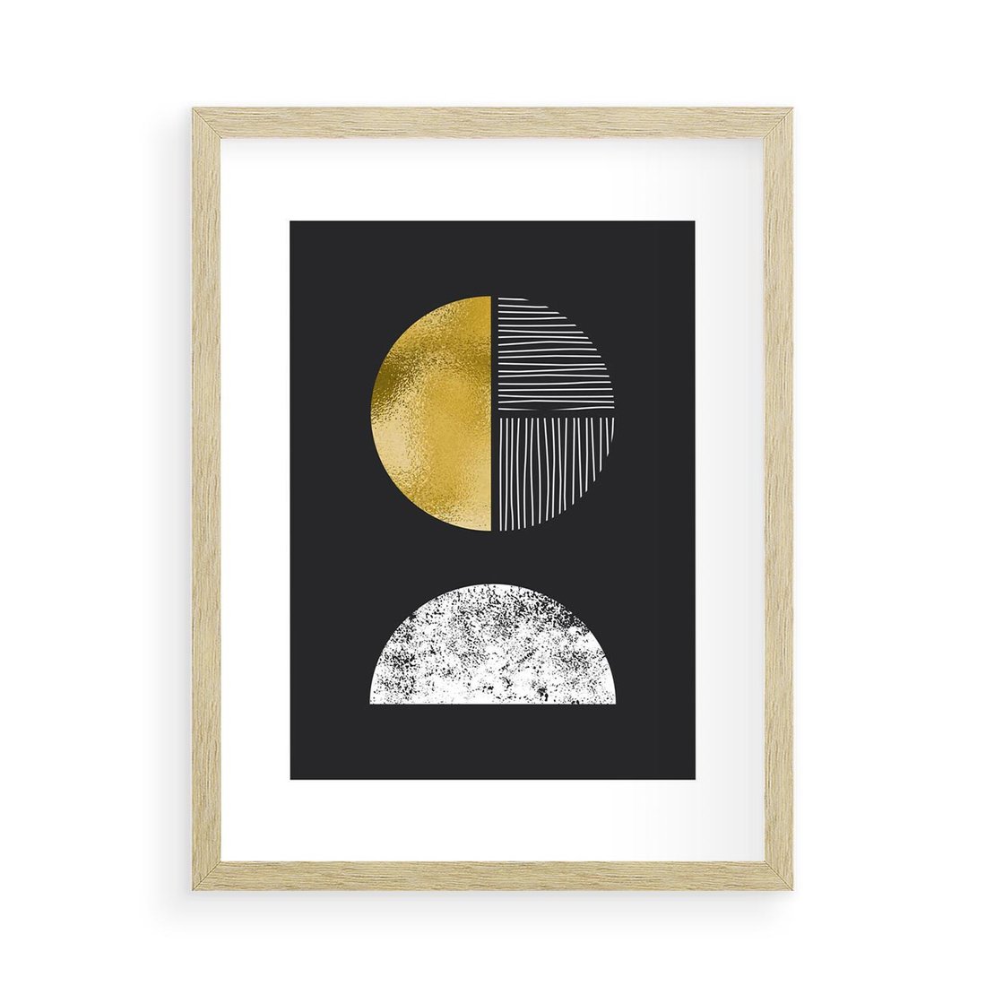 Plakat w ramie 50x70 - Złote Koła i Geometryczne Formy - grafika, modern - rama drewno
