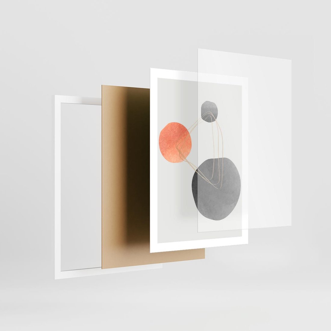 Obraz przedstawia nowoczesny plakat o charakterze abstrakcyjnym, z wykorzystaniem złotych elementów i akwarelowych plam. Ta kompozycja dodaje elegancji i luksusowego wyglądu do wnętrza, idealnie pasując do nowoczesnych aranżacji.