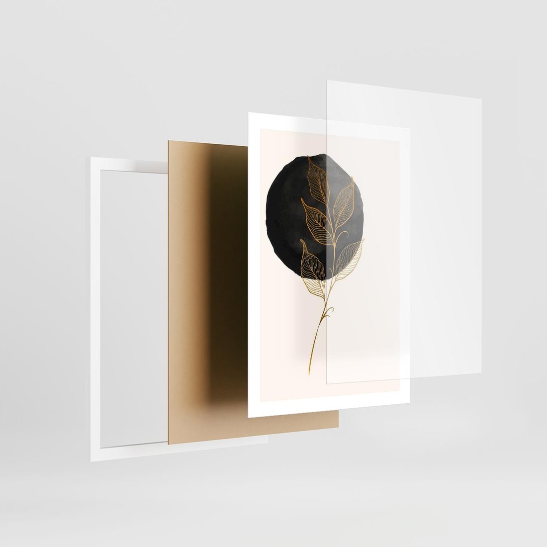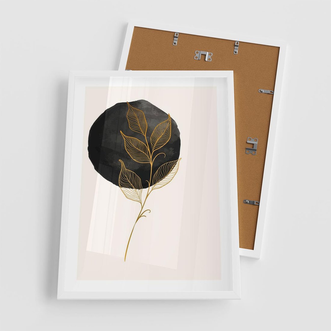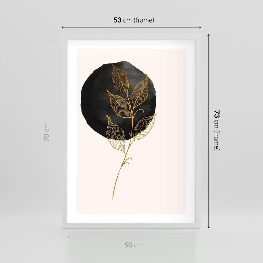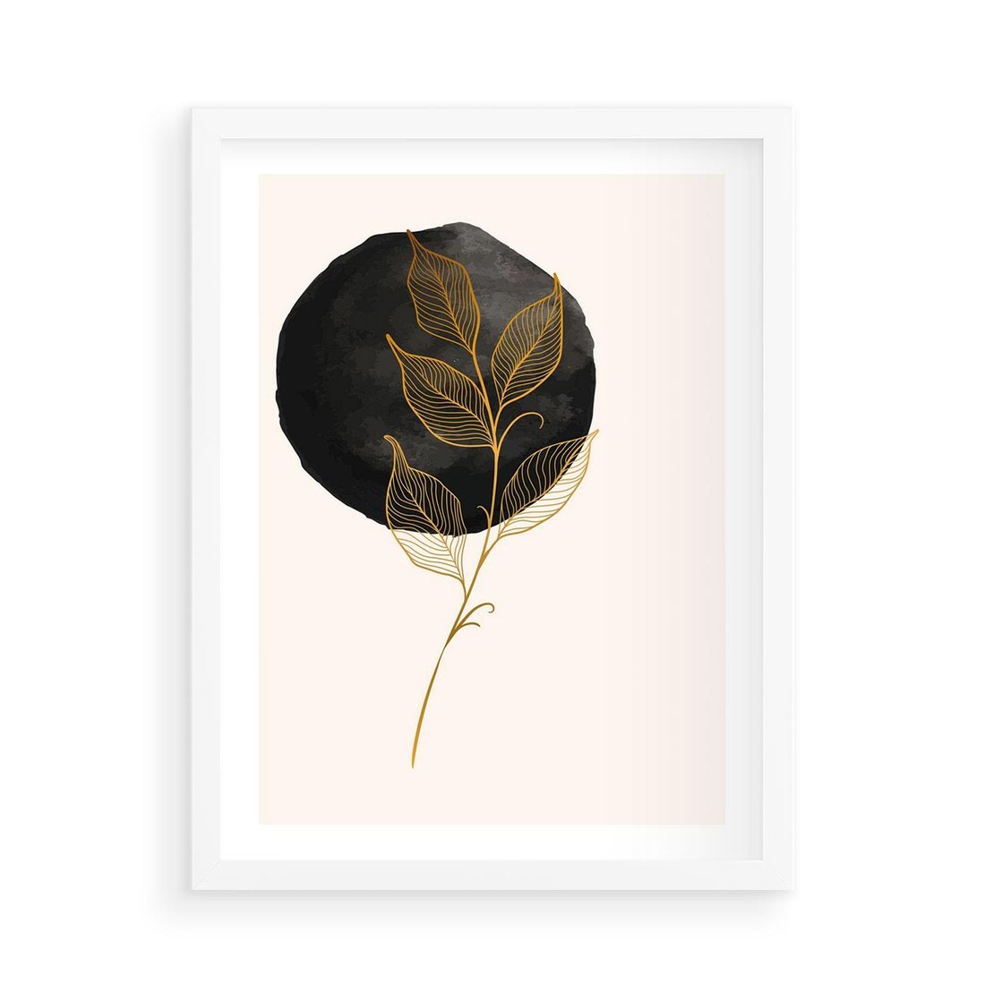 Plakat w ramie 50x70 - Złoty Liść na Czarnej Plamie - grafika, złoty liść - rama biała