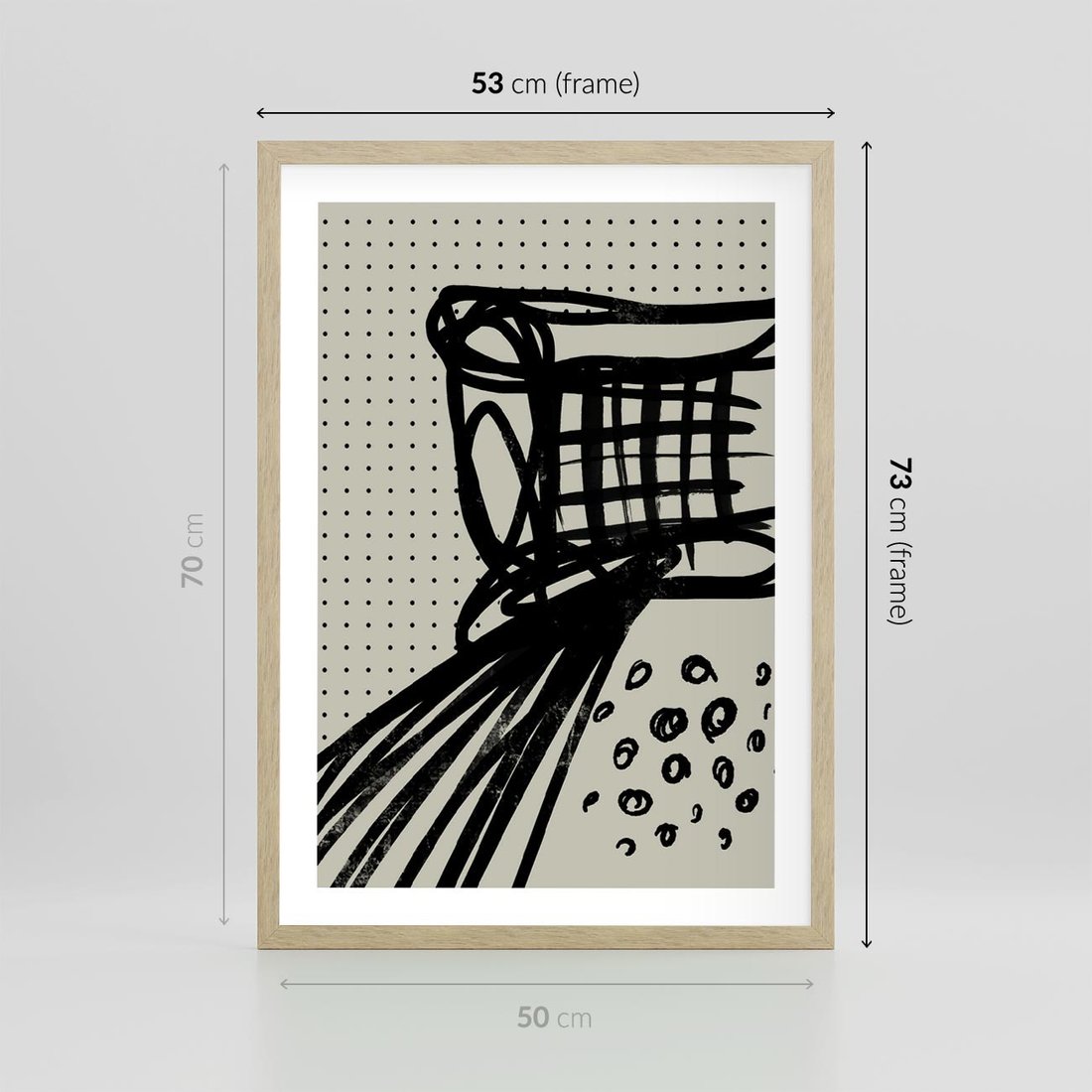 Nasz abstrakcyjny plakat to zaskakująca mroczna kompozycja, w której nieregularne i dziwne kształty układają się w pasjonującą opowieść. To wyraz nowoczesnej sztuki, gdzie granice konwencji zostają przekroczone, prowokując wyobraźnię i wywołując emocje. Ta unikalna dekoracja jest dla tych, którzy poszukują odważnych i nowatorskich wyzwań w sferze wizualnej sztuki.