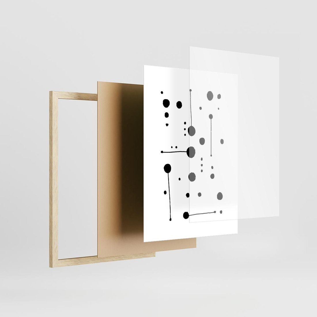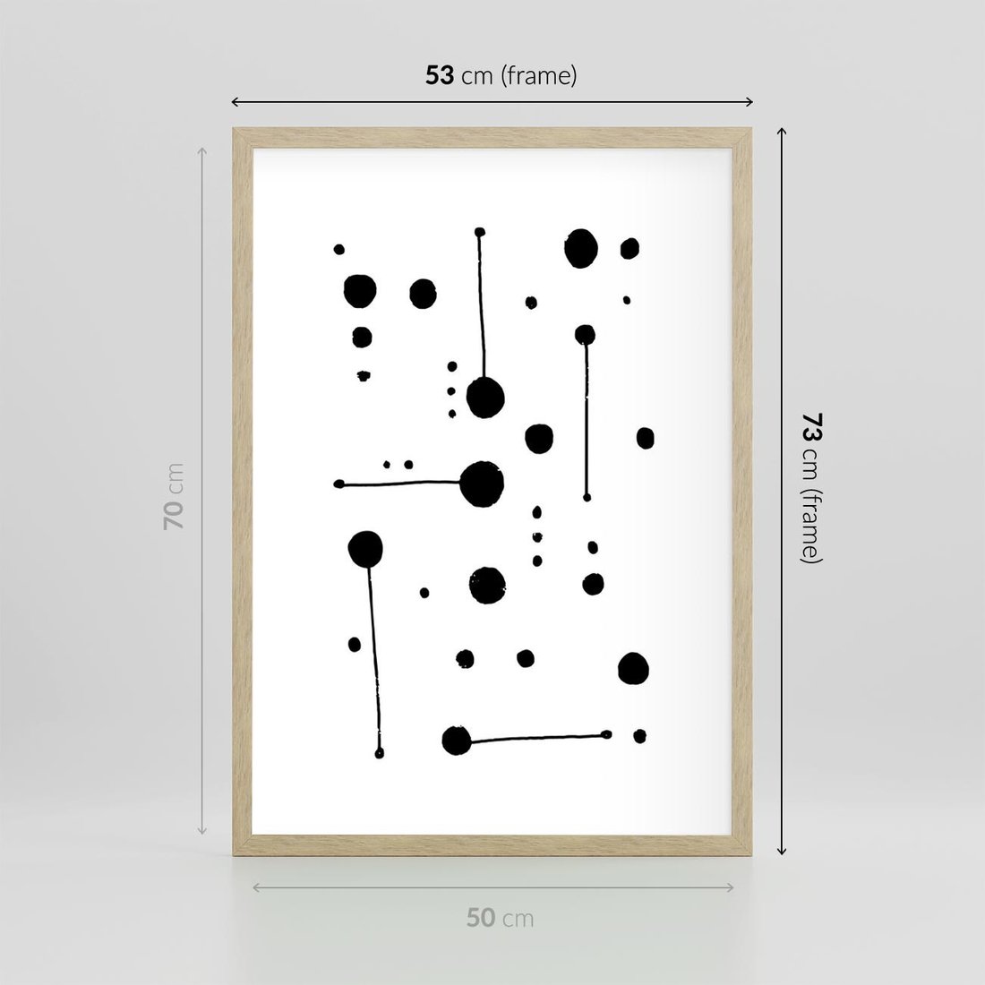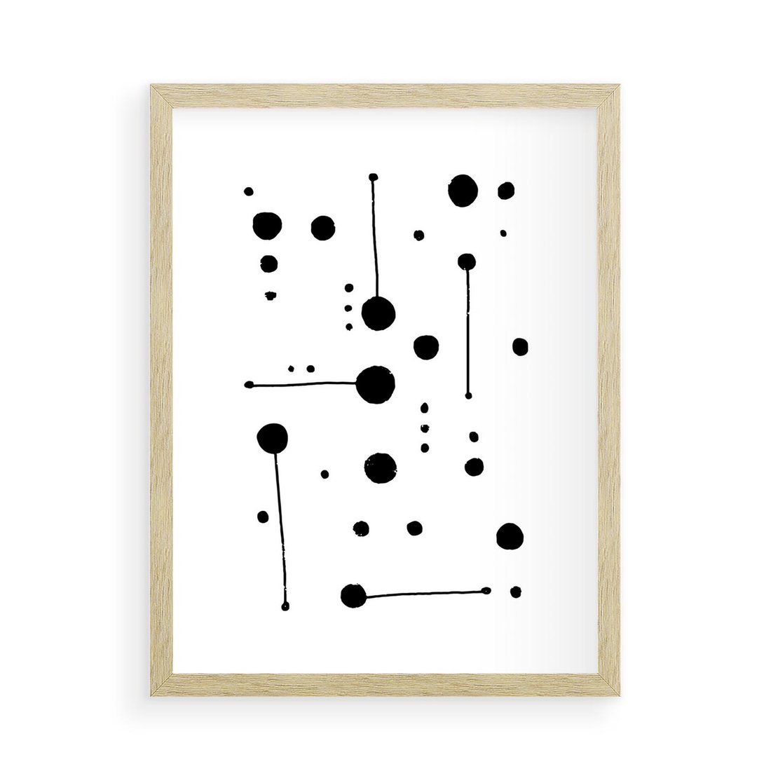 Nasz czarno-biały plakat to subtelne połączenie abstrakcji i minimalizmu, gdzie kropki i kreski tworzą misterną kompozycję. To delikatne wykorzystanie kontrastu, które zachwyca prostotą i elegancją. Ten plakat jest idealnym wyborem dla miłośników nowoczesnej sztuki, którzy cenią sobie wyrafinowany design i znaczeniowe detale.