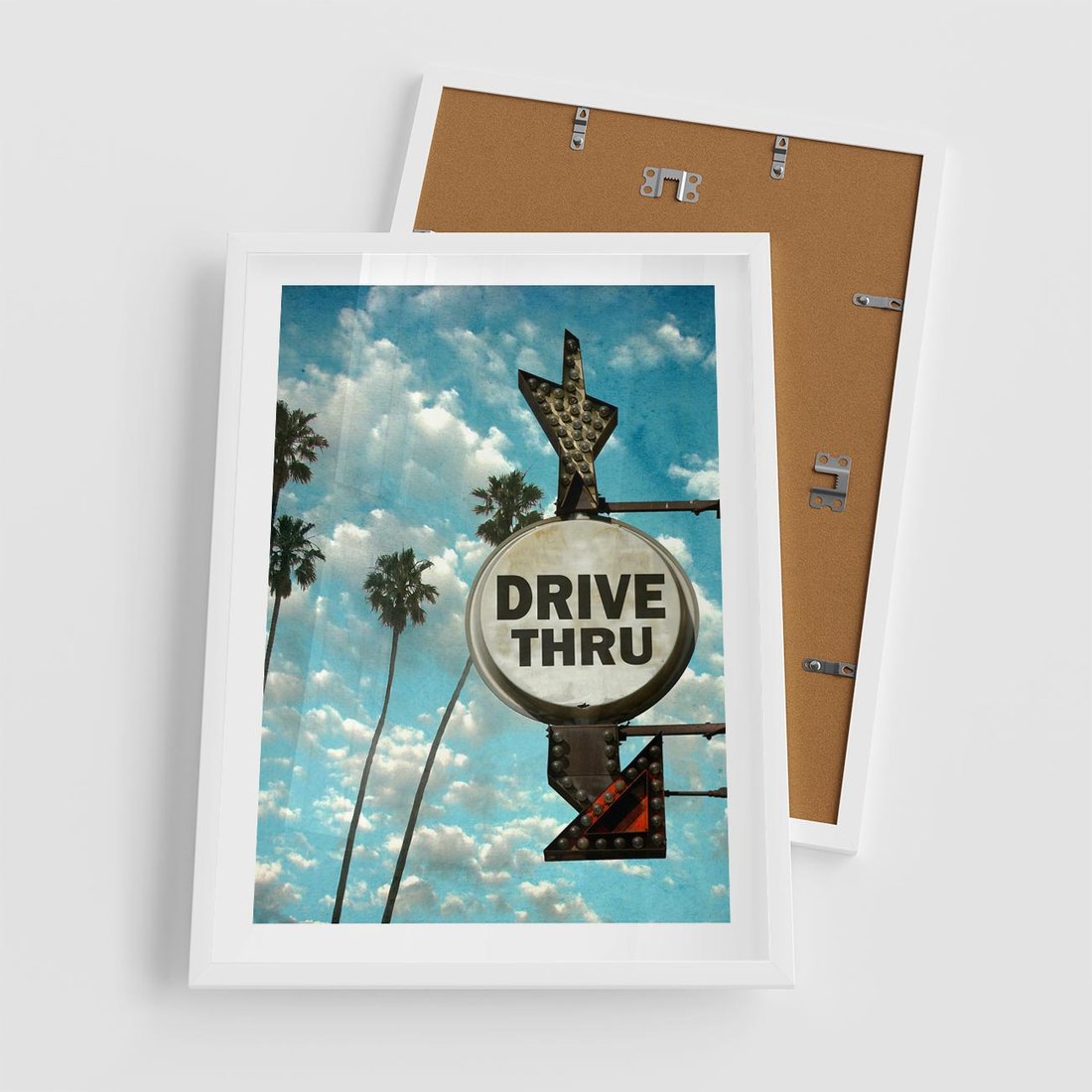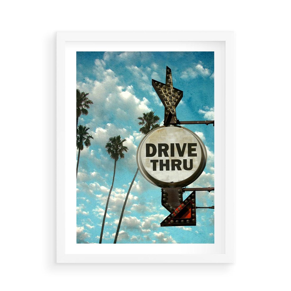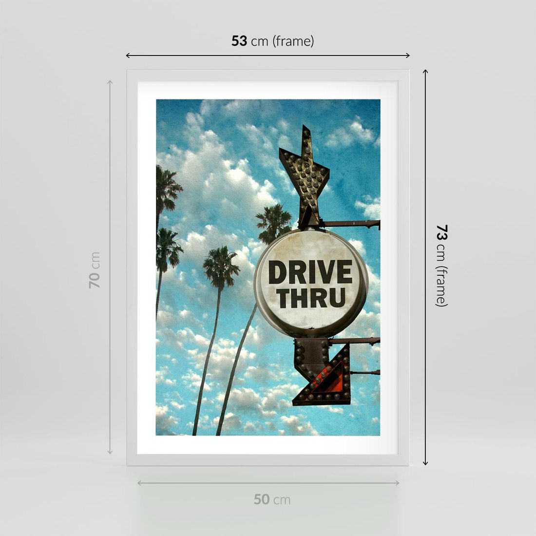 Plakat w ramie 50x70 - Znaki Palm: Relaksująca Oaza - znak, palmy - rama biała