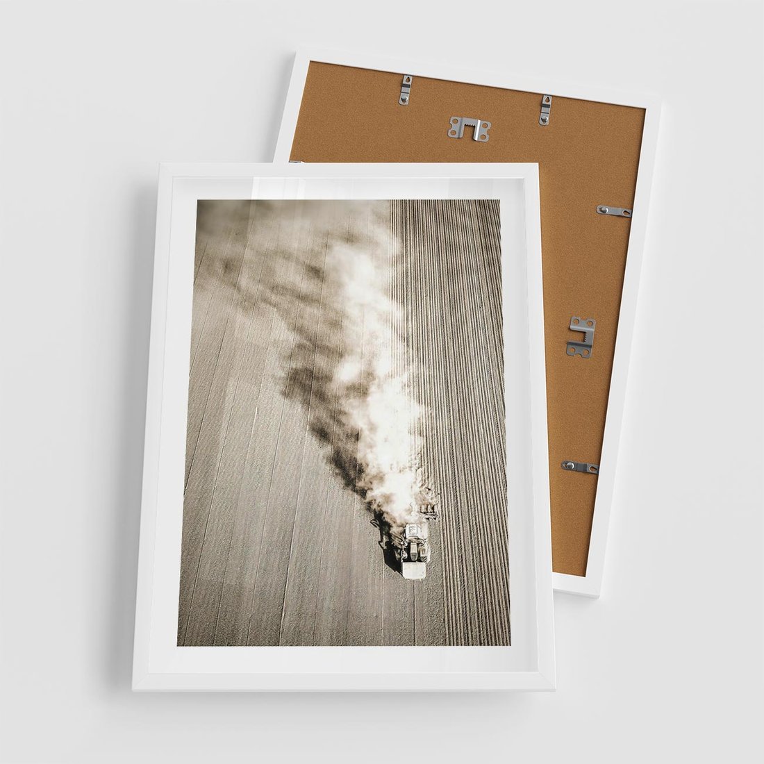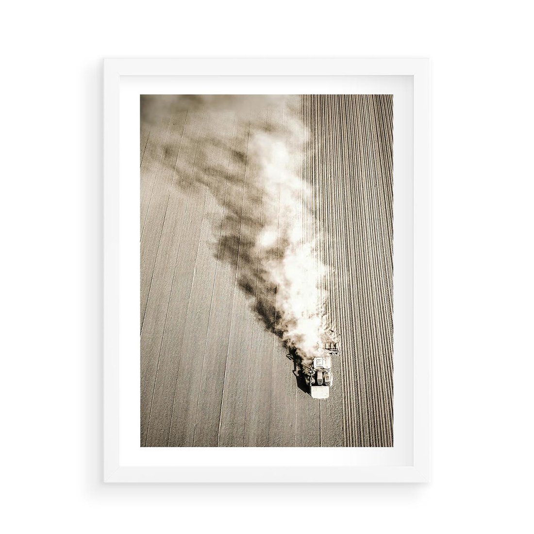 Plakat w ramie 50x70 - Żniwa na Wsi - pole, traktor na polu - rama biała