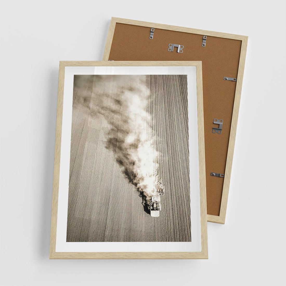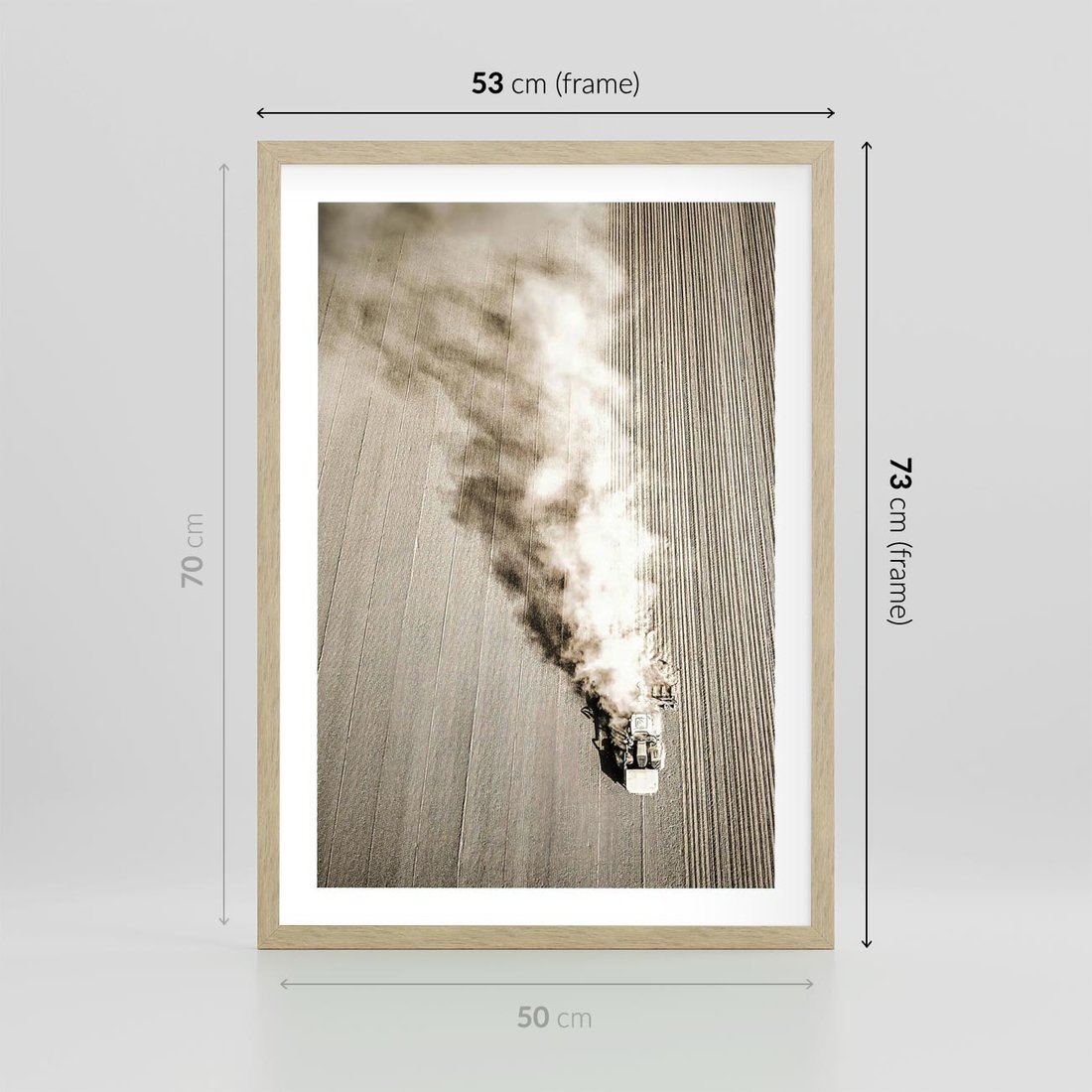Plakat w ramie 50x70 - Żniwa na Wsi - pole, traktor na polu - rama drewno