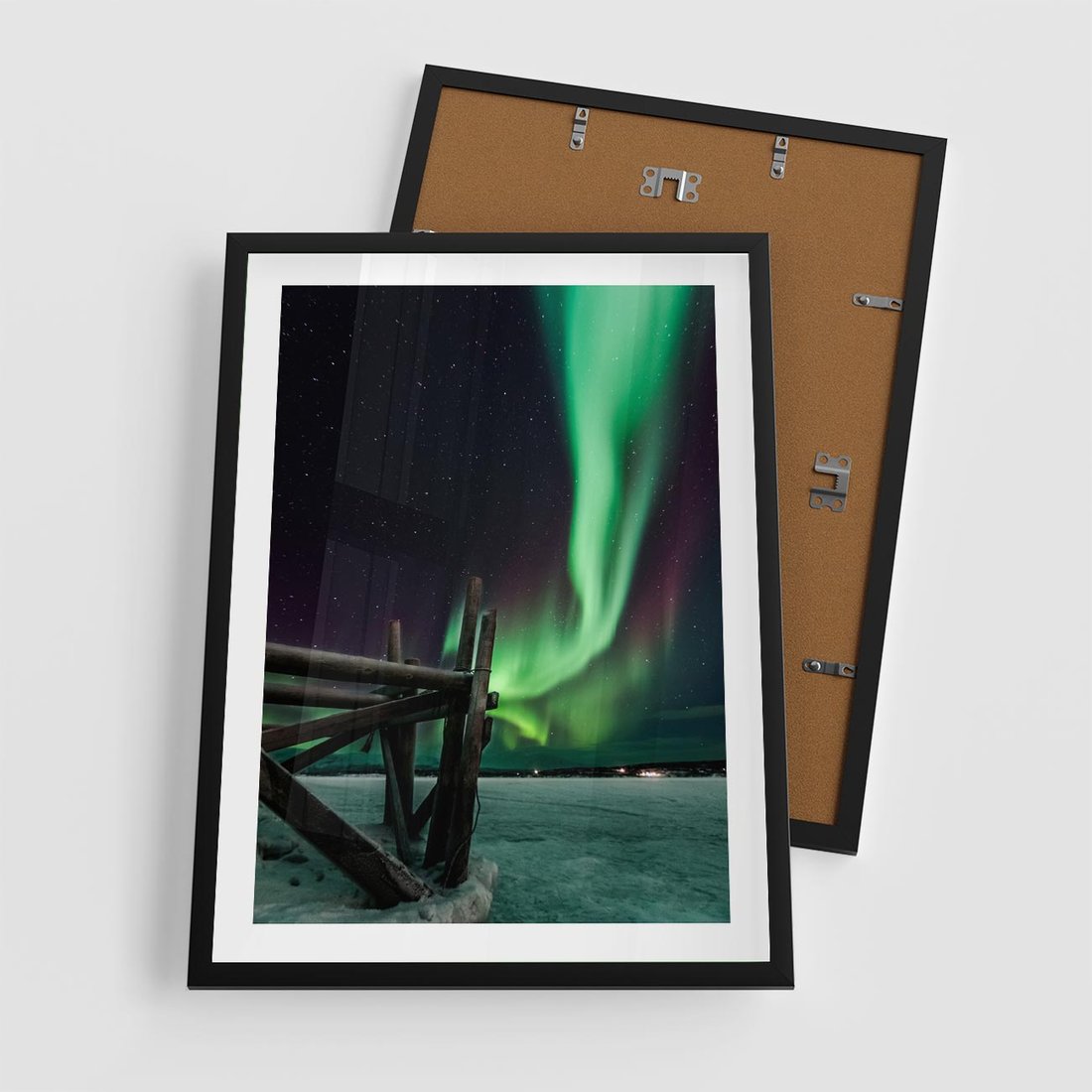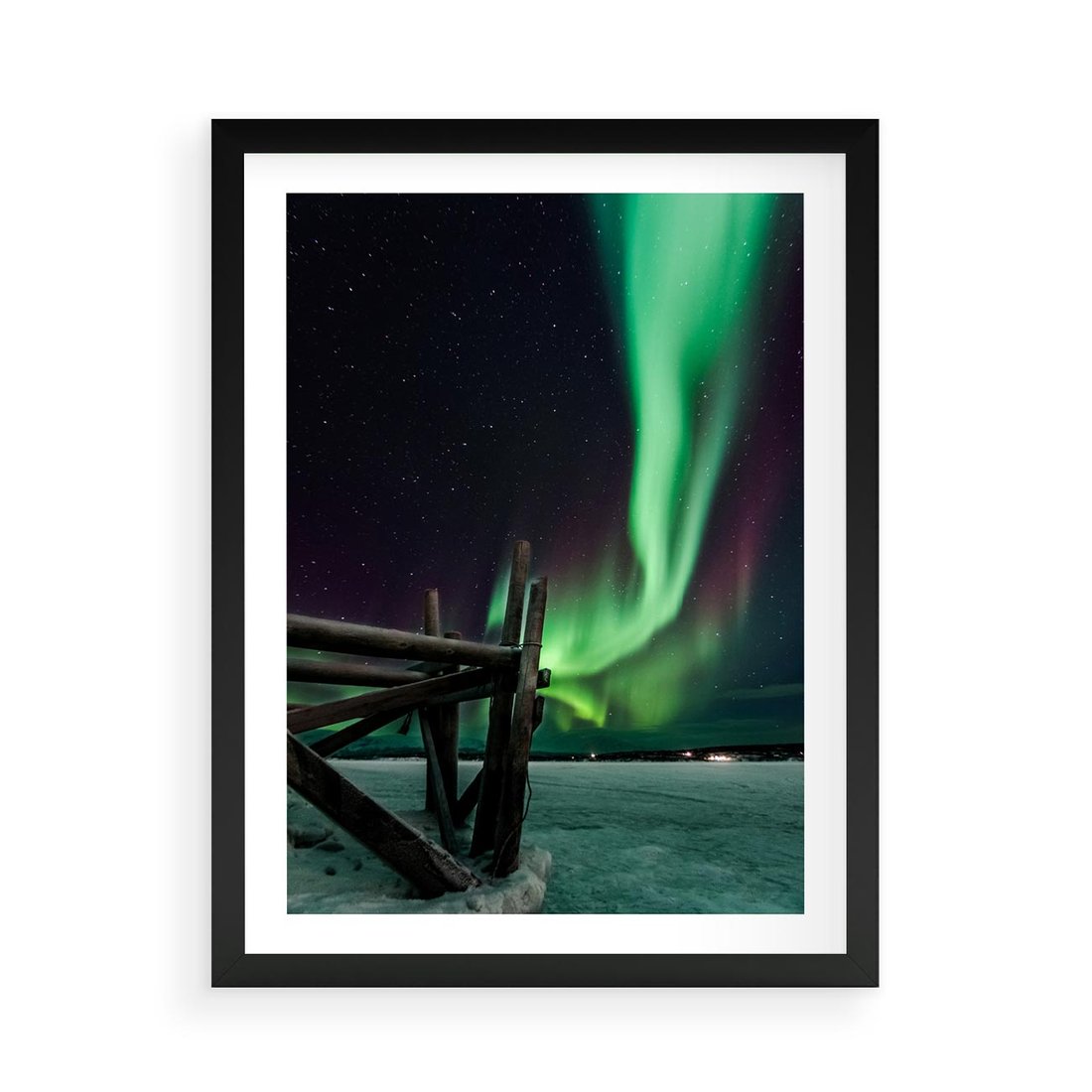 Przeniknij w magię zorzy polarnej dzięki temu uroczemu obrazowi przedstawiającemu nocne niebo. Z hipnotyzującymi kolorami i mistycznym nastrojem, tworzy atmosferę tajemnicy i niezwykłości. Ta kompozycja dodaje magicznego piękna i wrażeń związanych z podróżami, idealna dla miłośników niezwykłych zjawisk przyrodniczych i zimowych pejzaży.