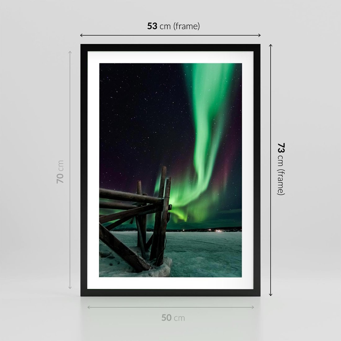 - Plakat w ramie 50x70 - Zorza polarna w tajemniczej nocnej przestrzeni