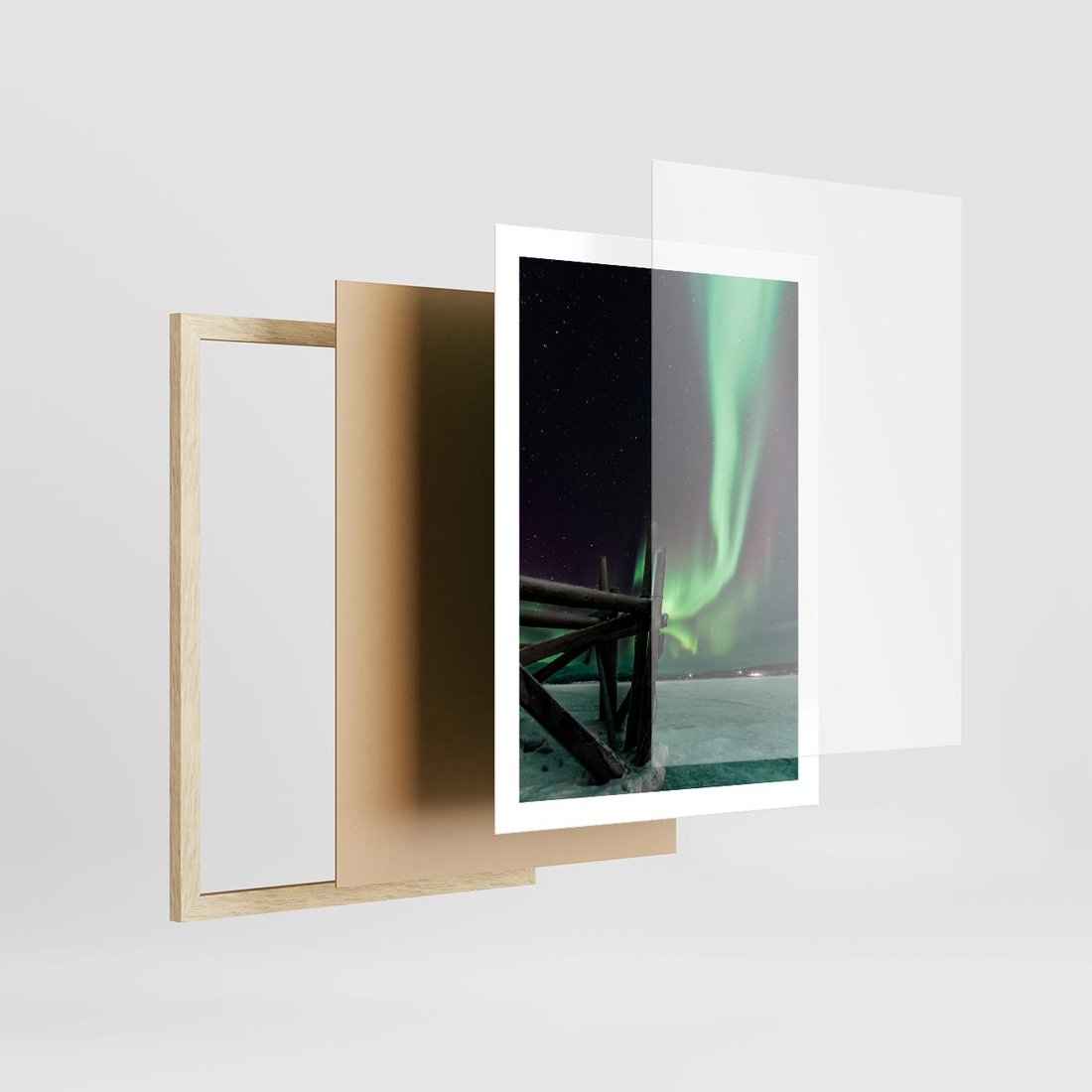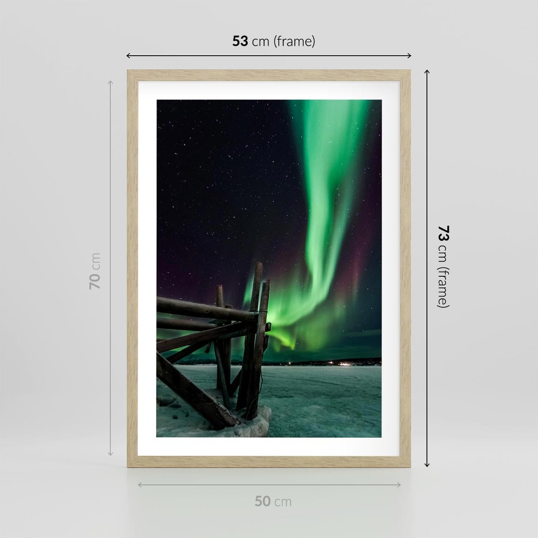 Plakat w ramie 50x70 - Zorza polarna w tajemniczej nocnej przestrzeni - zorza, polarna - rama drewno